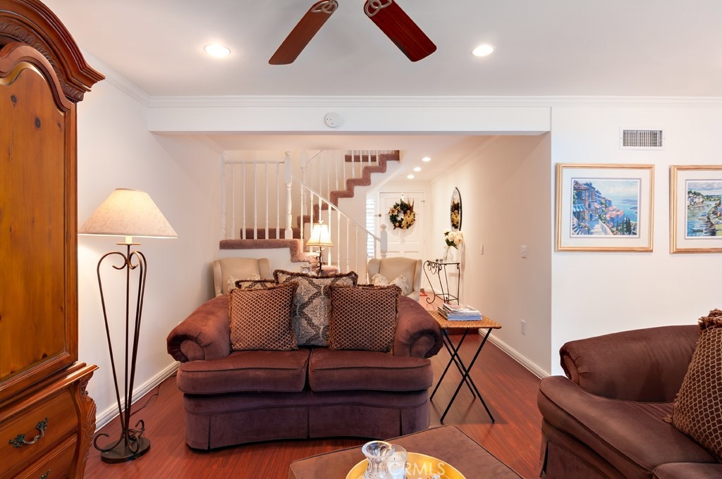 Welcome home to 306 Campbell Lane in Eastside Costa Mesa. This lovely home features 3 spacious bedrooms, 2.5 baths and a two car attached garage, all within just over 1700 square feet of living space. Laminate wood flooring, plantation shutters, recessed lighting and multiple ceiling fans are just some of the upgrades in the property. Oversized master suite with walk-in closet, dual vanities and skylight. Private flagstone patio ideal for outdoor entertaining. Brittanywoods is an immaculate community offering mature, well-maintained landscaping throughout, a gated pool/spa area, tennis court and clubhouse.