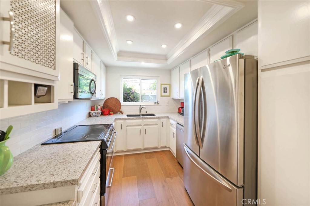 Welcome to this immaculate Brookview townhome located in a highly desirable area of Costa Mesa. Situated in the center of the city’s famed arts & entertainment district, this upgraded home will not disappoint. From the moment you walk into this spacious three bedroom, two and one half bath home, you will see the pride of ownership that surrounds. It boasts 1,500 square feet of living on 2 levels and the upgraded kitchen features Quartz countertops, recessed LED lighting, composite granite sink & LG stainless steel appliances. Recently upgraded engineered hardwood floors encompasses the dining room, kitchen and living area. Upgraded sliding glass doors open to a private patio for al fresco dining with family & friends. Upstairs you will find two spacious secondary bedrooms, with a plethora of closet space and an upgraded full bath. The generous sized primary room enjoys a remodeled bathroom featuring a frameless shower, high-gloss tile & premium quartz-top vanity & Hansgrohe fixtures. Enjoy the private balcony with direct access just steps from the bed & wraps around to one of the secondary bedrooms. New water heater, interior paint and the entire exterior of the complex was just repainted in 2019. The community proudly features two swimming pools, two tennis courts as well as two clubhouses. Conveniently located within minutes of South Coast Plaza, enjoy shopping & amazing restaurants, with access to the 55, 405, 5 and 73, & close to the beautiful beaches of Newport.