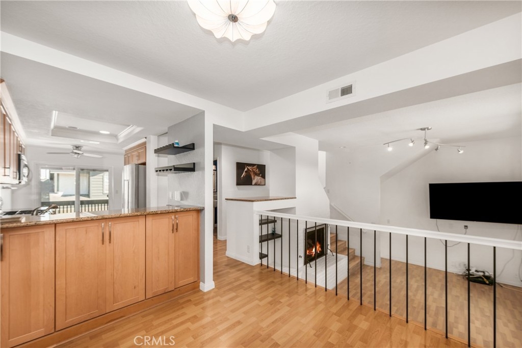 LIVE CLOSE TO THE BEACH!! Your new home is waiting for you one mile from the beach in this well maintained townhouse, featuring 3 bedrooms and 3 bathrooms. Step into a bright and airy floor plan that features vaulted ceilings, newer vinyl windows, laminate flooring, recessed lighting and ceiling fans throughout. Two dome-shaped windows at the top of the stairwell let in the plenty of natural light. The main floor features the kitchen, dining room and a bedroom and full bathroom. The kitchen features light cabinetry, a pantry, granite countertops, tile flooring, stainless steel appliances and a sliding door with encased blinds that open up to a balcony for that morning coffee. The dining area, featuring full-length mirrors, a breakfast bar and plenty of storage for dishes and stemware, overlooks the open-concept living room. The main floor bedroom has ample space, laminate flooring, and has been soundproofed as a music room. The main floor bathroom features a walk-in shower, pedestal sink and tile flooring. Step down into an inviting and bright living room that features a gas fireplace with built-in shelves, and a picturesque window overlooking landscaping. The private enclosed patio has newer fencing, perfect for BBQ’s and outdoor entertaining. The master bedroom is a private retreat. It offers vaulted ceilings, an ample sized walk-in closet with custom built-ins and a sliding glass door leading to a shaded balcony, perfect for rest and relaxation. The ensuite bathroom includes slate flooring, with iridescent tile surrounding the soaker tub and private water closet. The third bedroom has a ceiling fan, an ample sized walk-in closet with custom built-ins and also includes extra hidden space, perfect for luggage and storage bins. The lower level also features a convenient indoor laundry area with a washer, dryer and direct access to the two-car garage. This property has so much to offer, bike one mile to the beach, located close to shopping, restaurants and the trails of Fairview Park. Make this Costa Mesa property your new home.