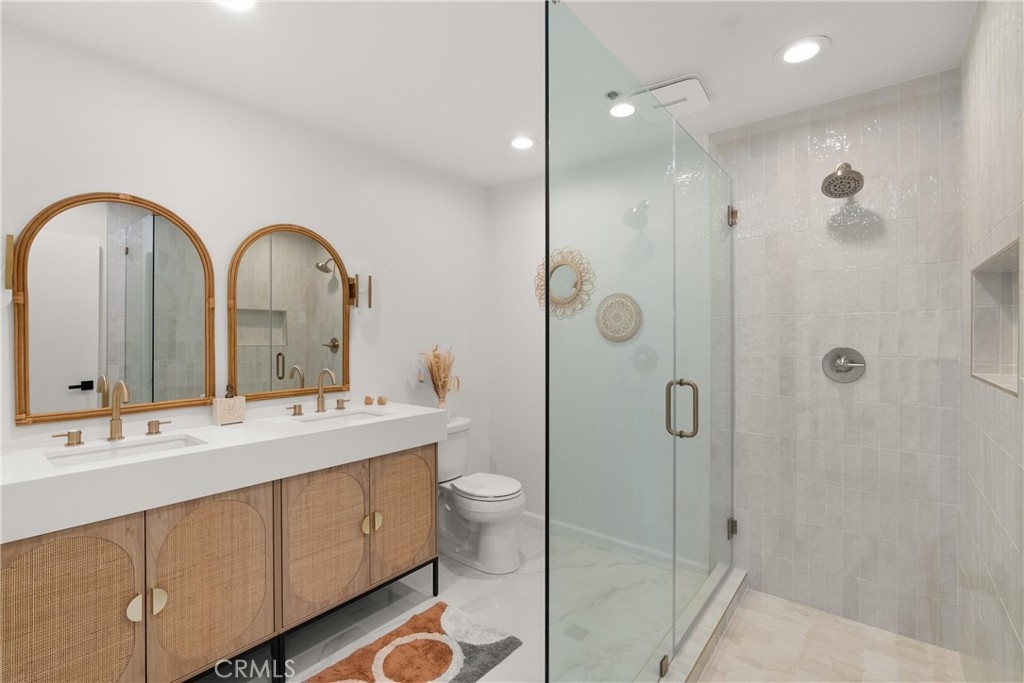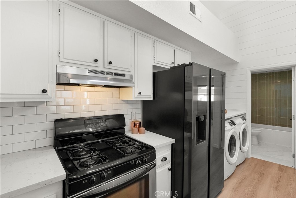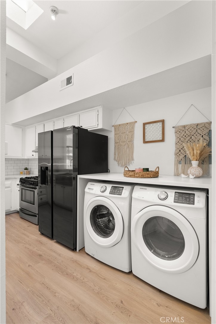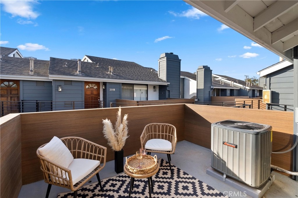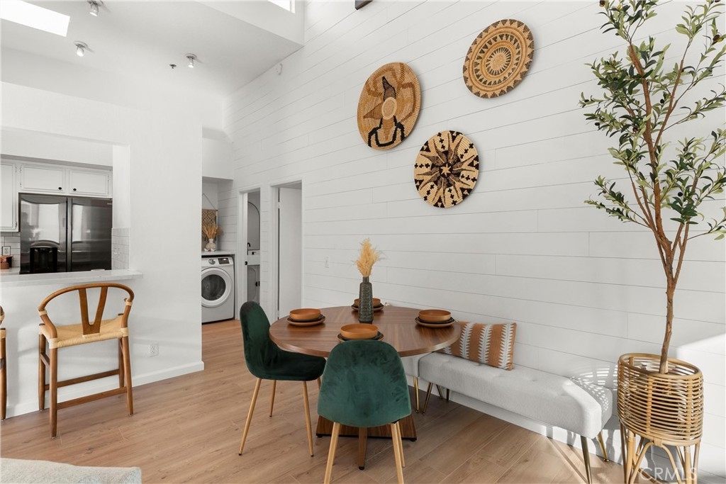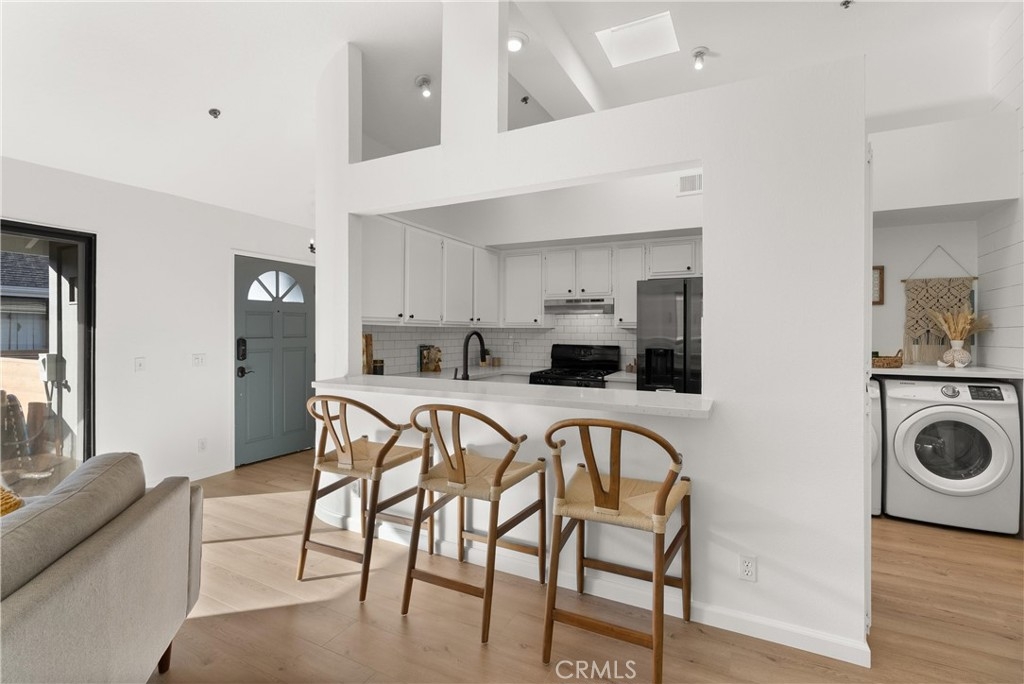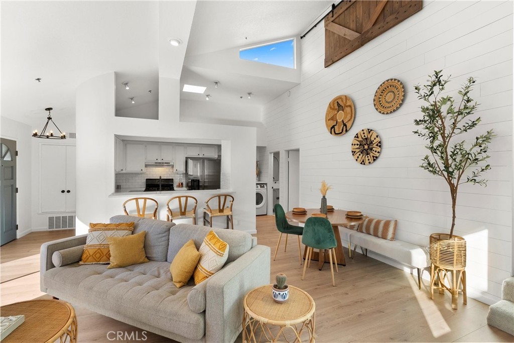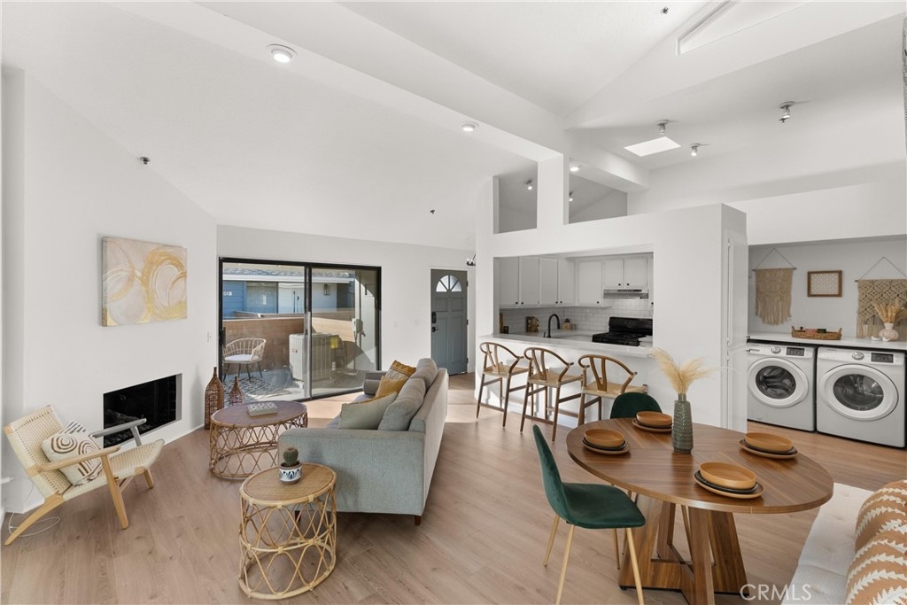 Welcome to your charming new home conveniently located in the heart of Costa Mesa. This beautifully renovated condo offers 1,008 square feet of luxurious living space. Step inside to an open concept living and dining area with vaulted ceilings and abundant natural light from brand new windows. The new laminate flooring flows throughout, creating a warm inviting atmosphere. The kitchen and living area are perfect for entertaining, with access to a charming deck—ideal for a relaxing nightcap. The primary ensuite is a sanctuary with new mirrored closet doors, a luxuriously renovated bathroom, oversized walk-in shower, double vanity, and quartz countertops. This unit also features a second full bathroom (a rare find!) with a custom vanity and tub. Enjoy modern conveniences like new central AC, brand new water heater, subterranean parking garage, and an in-unit washer/dryer. Centrally located, this gem offers easy access to all Costa Mesa has to offer. Experience elegance and comfort in this stunning residence.