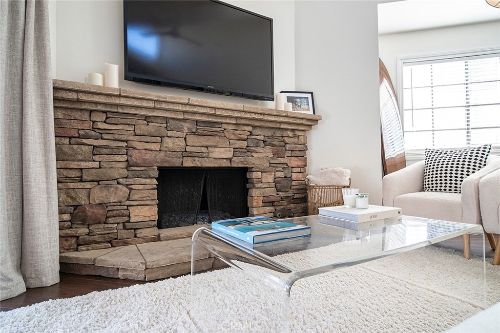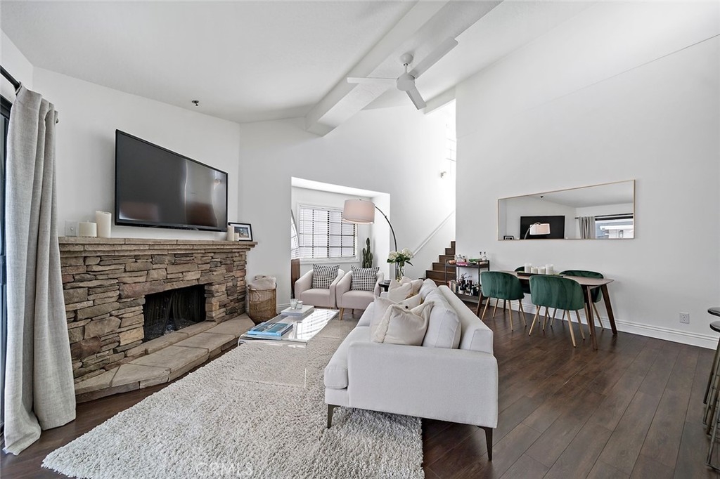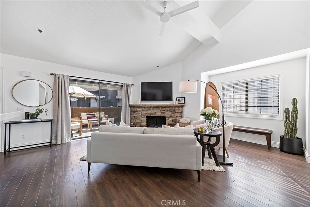 Gorgeous 2 Bedroom 1 Bath condo waiting for you in convenient Central CM. Upon entry, you'll instantly notice the vaulted ceiling open concept floor plan radiating an abundance of natural light throughout. The Living Room w/fireplace allows slider access to the spacious front patio area for your entertainment or relaxation. The Kitchen is equipped with stainless steel appliances, dual sinks, pantry, & breakfast bar. The primary main floor Bedroom has a large Vanity area, bathtub/shower combo, walk-in closet, and slider access to balcony with storage closet. Up the staircase sits a private 2nd Bedroom. Some of the many favorable amenities you'll appreciate include: Interior laundry closet, central AC, ceiling fans, newer laminate flooring, and ample cabinet space. The HOA is nearing completion of a sharp exterior face-lift which pairs well with the gated subterranean community garage with 2 reserved stalls as well as 2 permits for guest parking. Central CM allows for close proximity to freeways, Triangle Square outdoor mall, and the bustling beaches & shops of Newport!