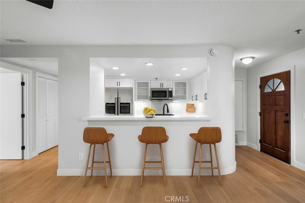 Highly upgraded 1 bed, 1 bath condo in desirable Coral Point community in the heart of Costa Mesa. This lower level unit has been freshly painted and has all new luxury vinyl flooring throughout. Kitchen features new white shaker cabinetry, Quartz countertops, stainless steel appliances and breakfast bar seating. Spacious living room with fireplace that opens to your private patio. Private, indoor laundry area off the kitchen. Oversized bedroom with remodeled full bath, walk in closet and private balcony with storage. Brand new central AC unit recently installed. Community features underground parking with two assigned spots and large dog/park area. The exterior and common areas of this community have gone through significant renovations recently. Close to freeway, dining, shopping, entertainment and the Pacific Ocean. This home is truly turnkey.
