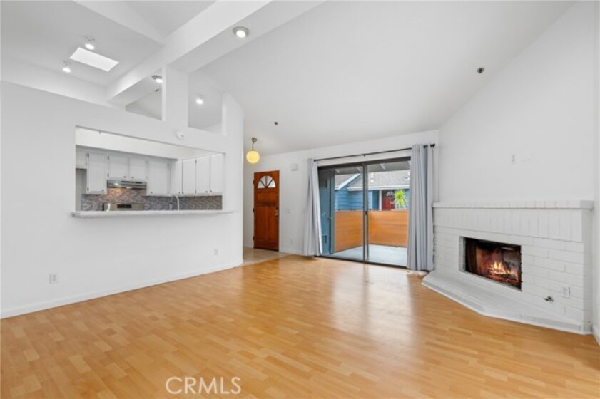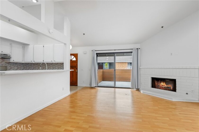 Welcome to this charming two-story, two-bedroom condo in the desirable Coral Pointe community. This versatile enclosed loft with a door was used as a second bedroom but is also perfect for a home office to suit your needs. The primary bedroom features an ensuite bathroom. You'll be greeted by a spacious and open living area, accentuated by a cozy fireplace. The room features vaulted ceilings and an open-concept design that allows natural light to flood the space, creating a bright and inviting atmosphere. A sliding glass door provides access to a spacious front patio, perfect for entertaining and dining. The kitchen is a delight, featuring bright white cabinetry, stainless steel appliances, and an eat-in counter that opens up to the living area. Additional amenities include a two-car gated parking garage located within the complex, an interior laundry closet for your comfort. This end unit enjoys a prime location at the rear of the community, ensuring privacy and tranquility. Situated near the vibrant Newport Beach, this condo offers easy access to major freeways, Triangle Square outdoor mall, and the bustling beaches and shops of Newport. Experience the best of coastal living in this delightful Coral Pointe condo!