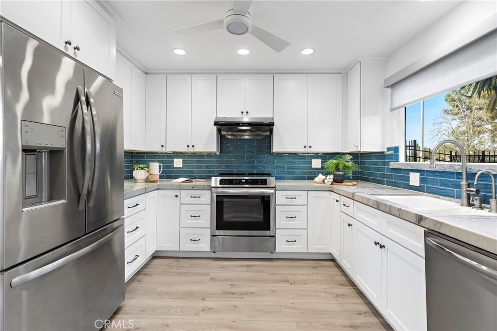 Elegant Resort-Style Living at the Mesa Verde Country Club Villas in Beautiful Mesa Verde!! Discover the epitome of refined living in the heart of Mesa Verde. Offering a Perfect Blend of Location, Lifestyle and Luxury —This Newly Remodeled and Upgraded Townhome is MOVE IN READY and is conveniently located next to the prestigious Mesa Verde Country Club. Throughout You Will Find NEW EVERYTHING!! From the Paint, Laminate Grey Flooring, Extensive Recessed Lighting, High Baseboards, Ceiling Fans with Light Kits, Ductless Split A/C & Heating Units in Every Room, Upgraded Dual-Pane "Magic" Windows and Sliding Doors, ensuring a modern aesthetic and Energy Efficiency Upgraded Electrical Panel. Downstairs' Features: This home features an open concept floor plan that is light, bright, and airy. The spacious living room flows seamlessly into a completely remodeled kitchen, adorned with granite countertops, custom cabinetry, and brand-new appliances. Enjoy culinary delights while basking in the sun through the kitchen sink’s picturesque window, a tiled private patio with an outdoor shower—perfect for entertaining, relaxing or rinsing off the sand after a day at the beach. A Spacious Primary Bedroom or Granny or Grandpa Room, Office, or a Private Retreat. A beautiful Grecian stone-walled wet shower/bathroom is to the right behind front door , and across the hall adds a touch of elegance. A large downstairs closet next to staircase leads to additional storage space with light to the right under the staircase. Upstair Features The Spacious Primary Suite boasts an expanded luxurious tile shower, a new vanity with granite countertop. Enjoy the fresh air with a window that opens and closes for optimal ventilation. Two additional bedrooms offer serene views, one featuring a slider to a private balcony, perfect for breathtaking westerly sunset views. The guest bath is equally impressive, showcasing a designer vanity and a stylish tub/shower combo with a clear glass barn doors. The Washer/Dryer hkups & Utility sink are located in the 2 car garage. Security is paramount with a gated courtyard entry. This home is classified as a single-family residence, making it eligible for FHA or VA financing. Remember to show the client out the back patio and to the right, follow path to access to the pool, jacuzzi and cabana. Key is on small table. This exceptional property is just a short drive or bike ride to the stunning beaches of Southern California.