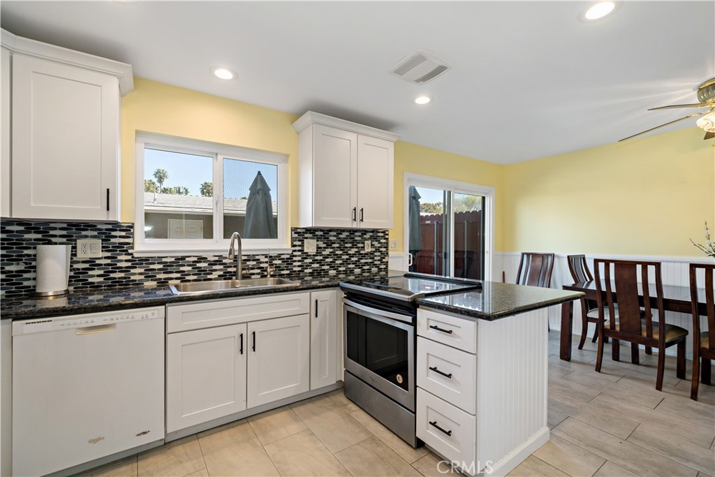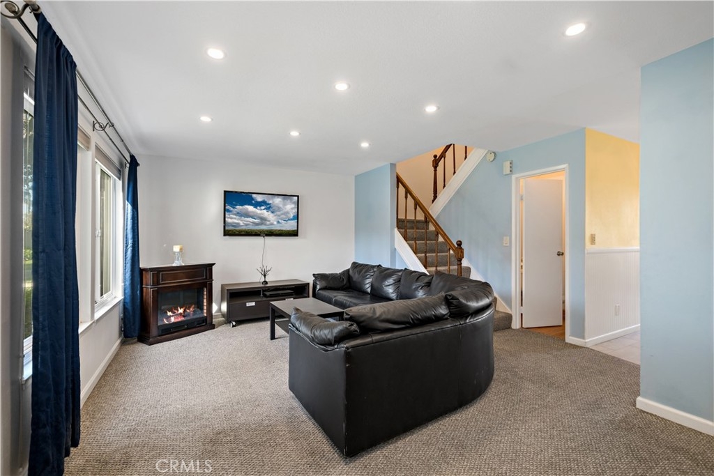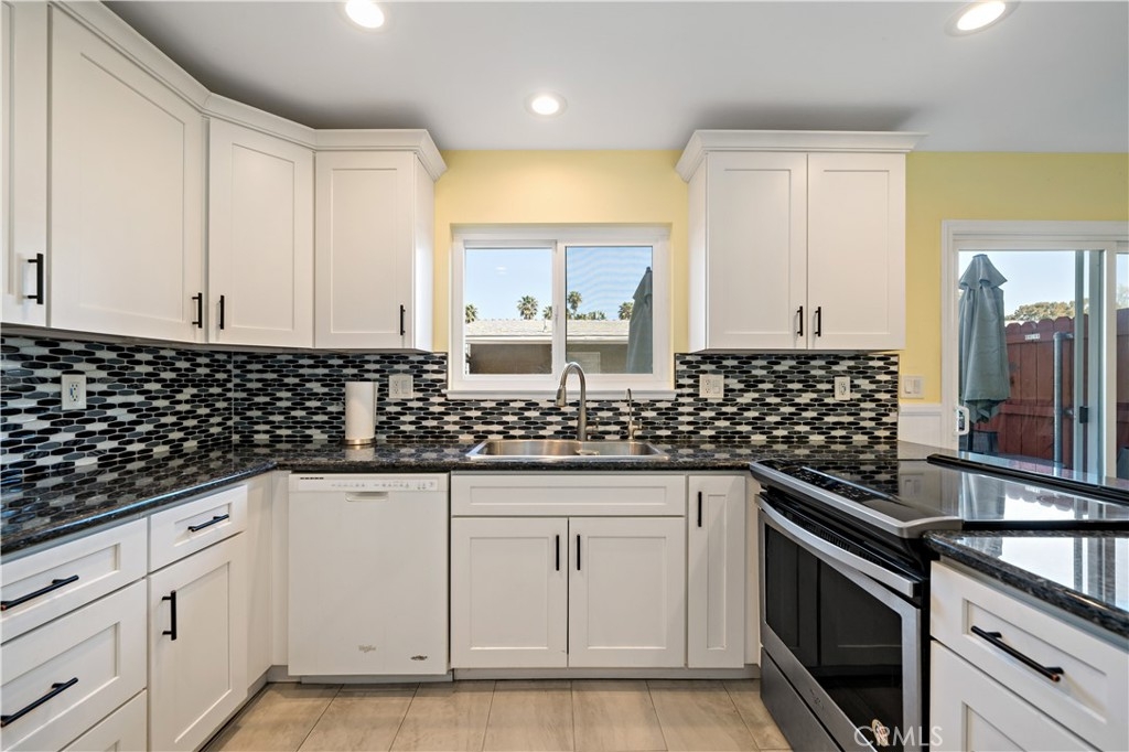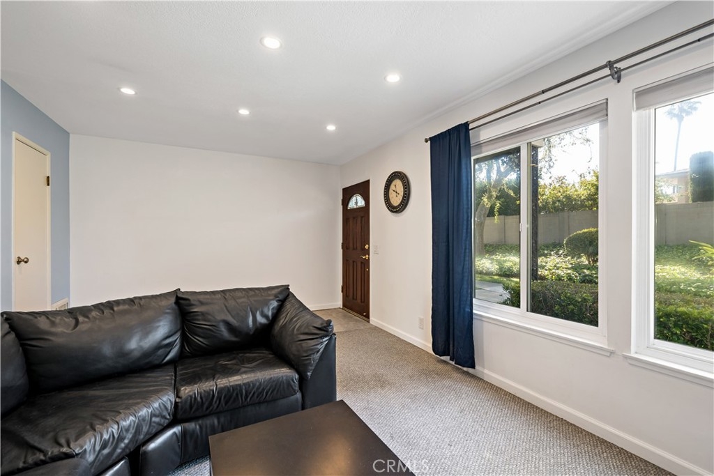 LOCATION! LOCATION! Experience the Ocean Air living in the very desirable city of Costa Mesa which borders both Newport Beach & Huntington Beach. This remodeled 3 Bedroom 2 and a half bath END UNIT boasts of privacy with only 1 common wall. This Townhome raves of the following features: custom white cabinetry with back splash in kitchen with blue coral granite counters, recessed LED lighting, wainscoting, reverse osmosis water system, and Italian tiled floors in both kitchen and dining area. There is a newly screened sliding glass door from the dining area that leads to a spacious patio that is connected to the 2-car garage through a new exterior door. The garage features built-in wood shelving and a work bench with fluorescent lighting. There is a large window in the living room with a custom shade and drapes, recessed LED lighting and carpet that continues up the stairway and into the 3 bedrooms. The downstairs half bath has fresh paint and laminate wood flooring, All 3 bedrooms have mirrored closets with 2 in the master, ceiling fans with remotes and new window coverings. Both full baths upstairs have ceramic tile from the tub to the ceiling on the bathtub wall and granite flooring. Other features include a jacuzzi tub in the master bath, dual pane windows, and Nutone fans in bathrooms. All appliances stay without warranty. Optional to remain TV, dining room table and chairs and patio furniture. Easy access to the 405/73 and 55 freeways.