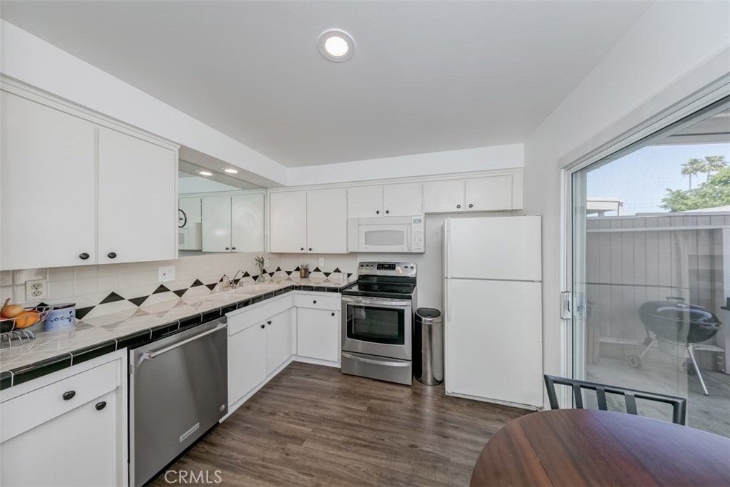 Beautifully Upgraded, Charming, and Lovely 2-Story End-Unit Townhome in the French Quarter Garden Community. Surrounded with view of mature trees and a lush Greenbelt, this Turn-Key home features Two Bedrooms and Two Bathrooms, an open living space and kitchen/dining area leading out to a Spacious Enclosed Private Patio for outdoor activities and grilling for Summer time. The home offers detached 2-Car Garage plus one additional assigned parking space, and lovely community Pool and Clubhouse. Absolutely a stunning starter home or perfect for first-time Home Buyer. One of the most sought after desirable locations in Orange County with easy access to Freeway, Shopping and Restaurants.