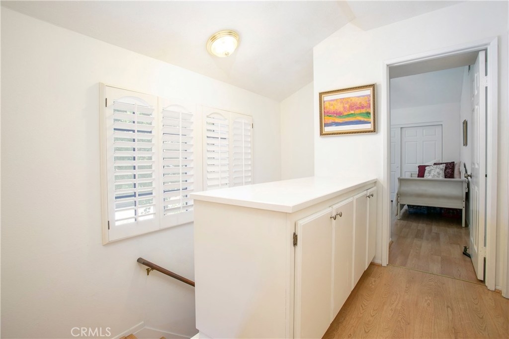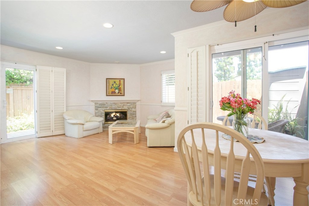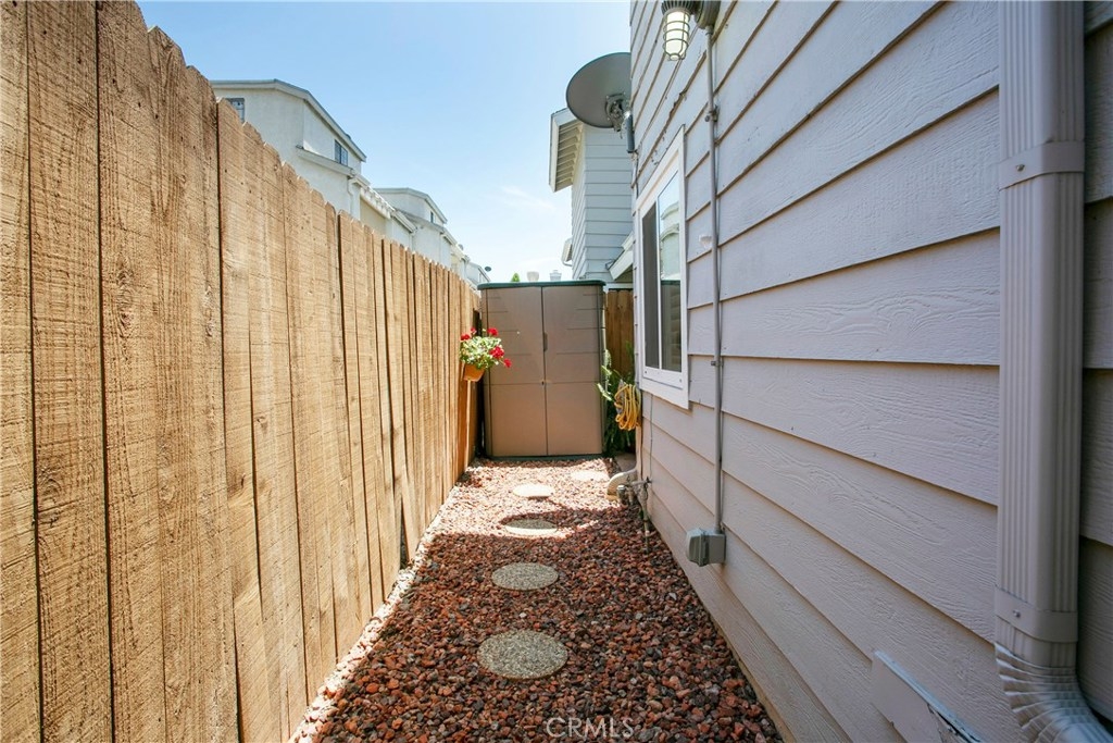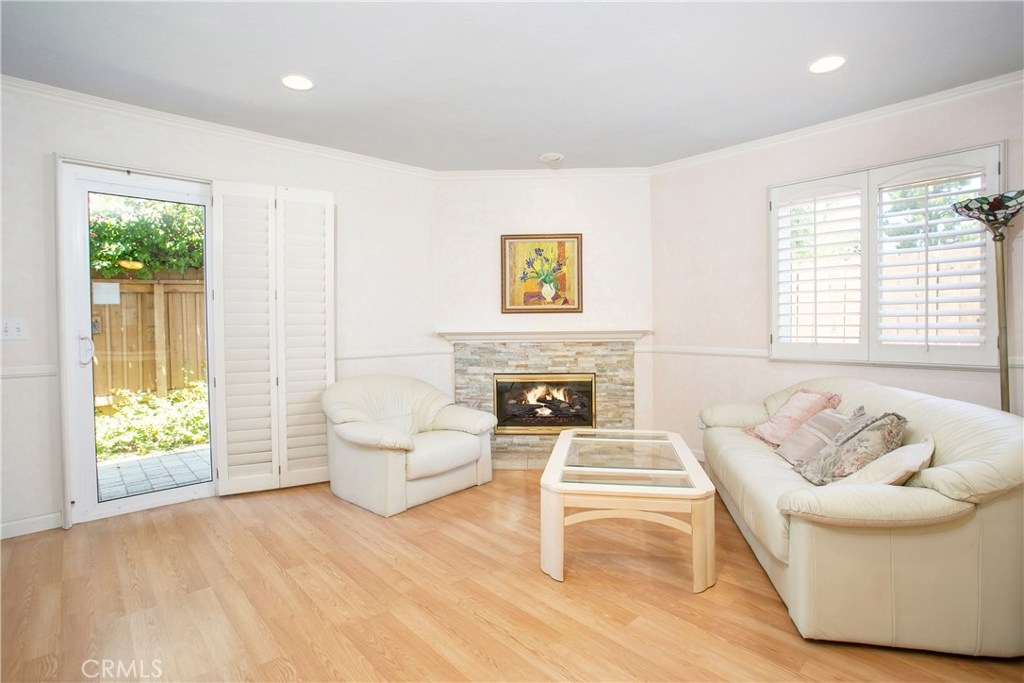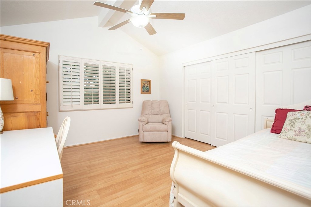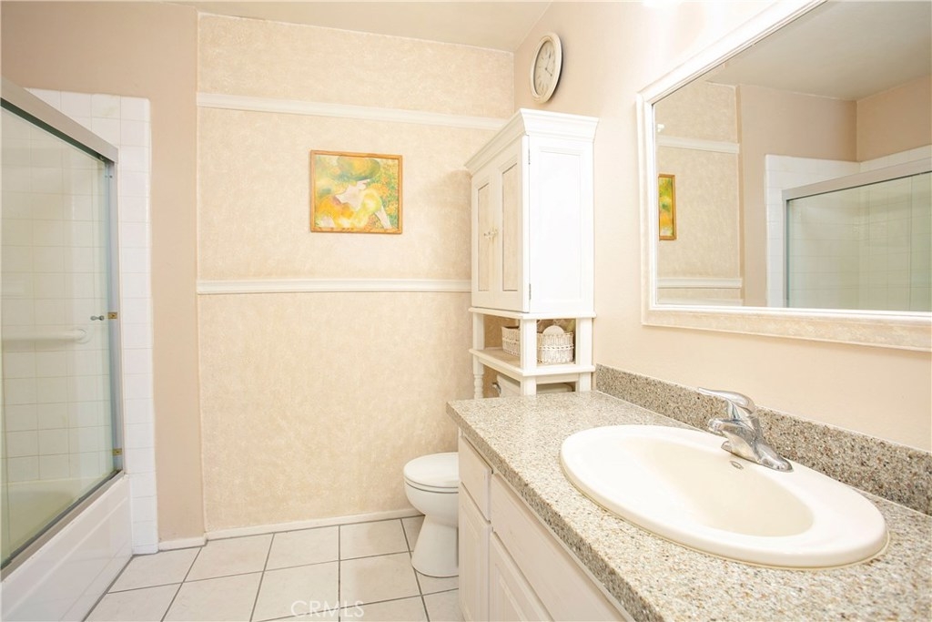 This home has so much to offer! It is an end unit with dual masters with upgraded bathrooms and granite countertops in each. The home is light and bright with an open floor plan with the stone fireplace holding pride of place. The home has been well taken care with many upgrades made over the years including an updated kitchen, dual pane windows with custom shutters, Pergo flooring, scraped ceilings and so much more. Upgrades such as the windows, 3M coating and upgraded insulation have resulted in a very low energy use home. If you are looking for a place to store your extras, you will be delighted with the built-in storage units and shelves in the 2 car garage. The laundry room is conveniently located upstairs between the bedrooms. The wrap around yard is perfect for enjoying Southern California weather. Central A/C. Come see your new home!