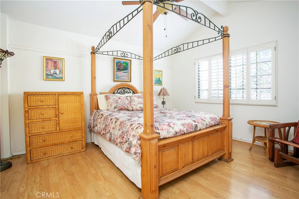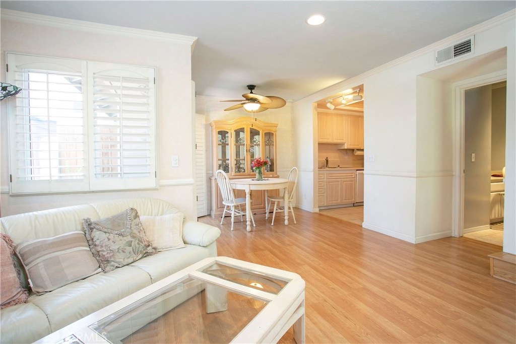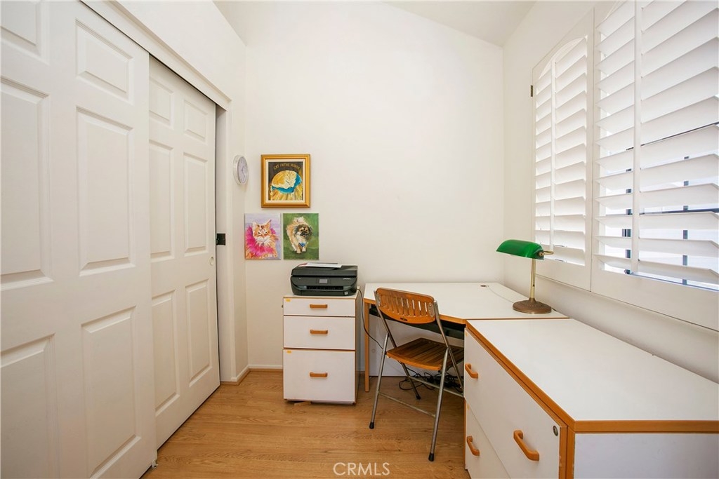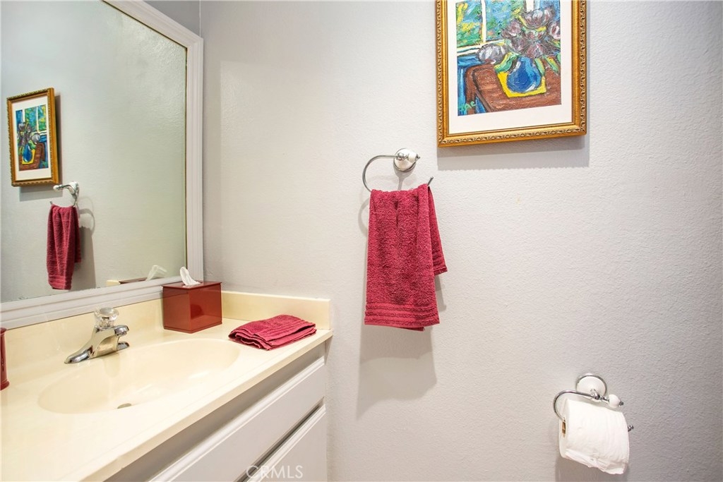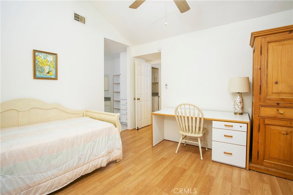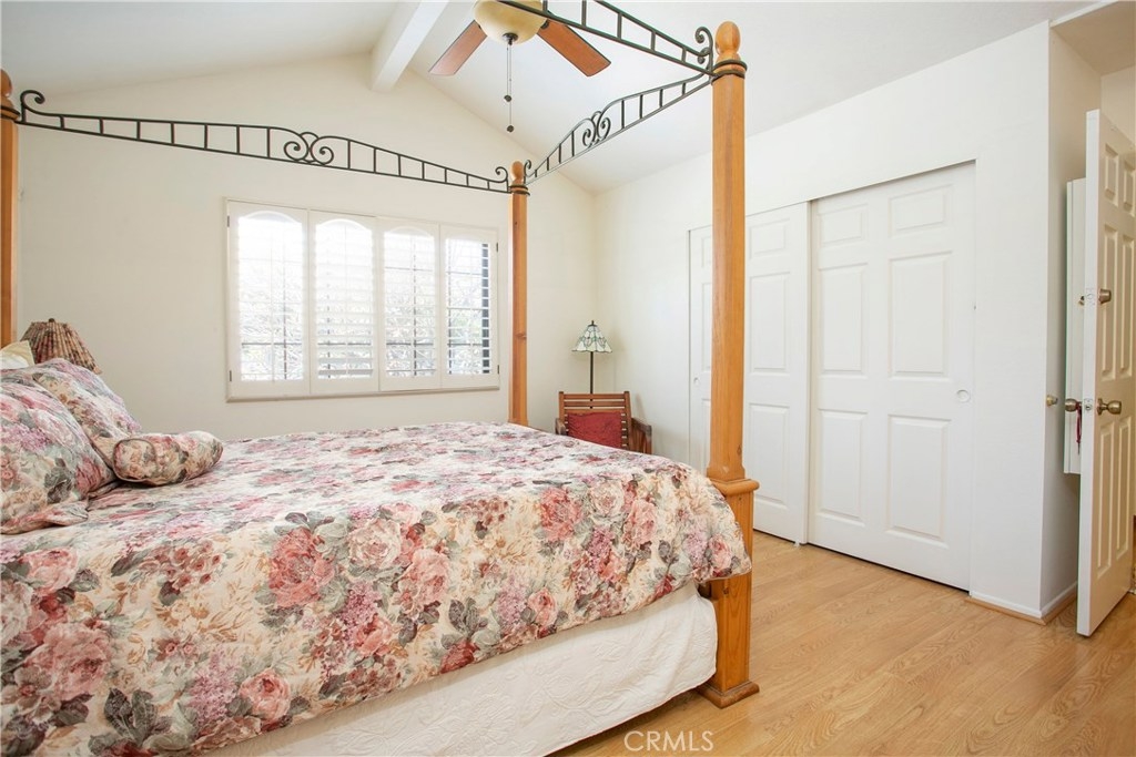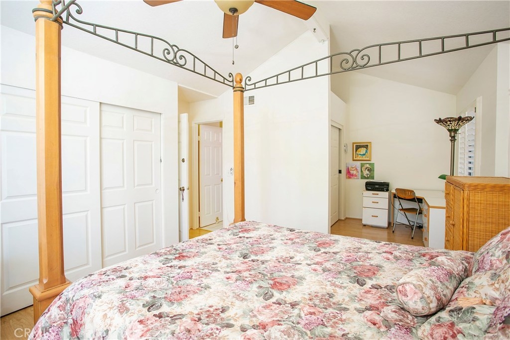 This home has so much to offer! It is an end unit with dual masters with upgraded bathrooms and granite countertops in each. The home is light and bright with an open floor plan with the stone fireplace holding pride of place. The home has been well taken care with many upgrades made over the years including an updated kitchen, dual pane windows with custom shutters, Pergo flooring, scraped ceilings and so much more. Upgrades such as the windows, 3M coating and upgraded insulation have resulted in a very low energy use home. If you are looking for a place to store your extras, you will be delighted with the built-in storage units and shelves in the 2 car garage. The laundry room is conveniently located upstairs between the bedrooms. The wrap around yard is perfect for enjoying Southern California weather. Central A/C. Come see your new home!