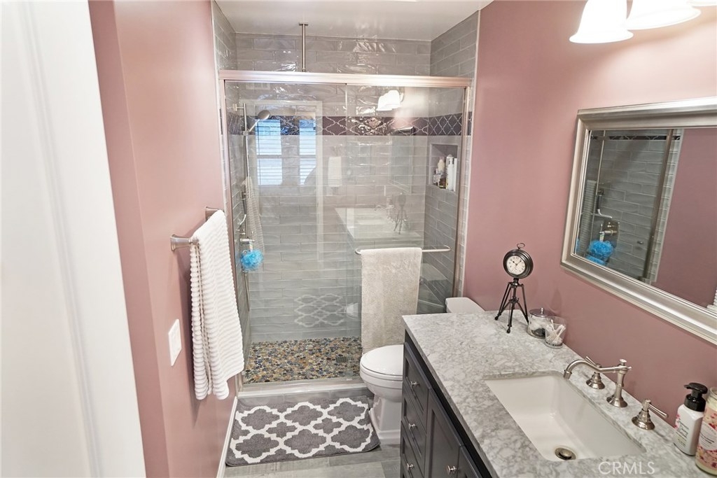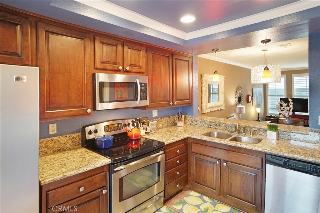 Charming Mesa Bluffs 2 Bedroom 2.5 Bath Townhouse Style Condo Features an Updated Kitchen with Granite Counters, Quiet Close Drawers & Pantry, The Open Floor Plan is Great for Entertaining with Dining Room, Living Room, Cozy Fireplace, Beautiful Hardwood Floors and Plantation Shutters. Upstairs has Two Oversized Bedrooms with Vaulted Ceilings, 2 Bathrooms and Laundry. Features Also Include Central Air and Heat, Private Patio and comes with a 1 Car Garage Plus 1 Assigned Parking Space. This Quiet Community is Centrally Located, Only Minutes from the Beach, Right Next Door to Parks and Close to freeways and Shopping.