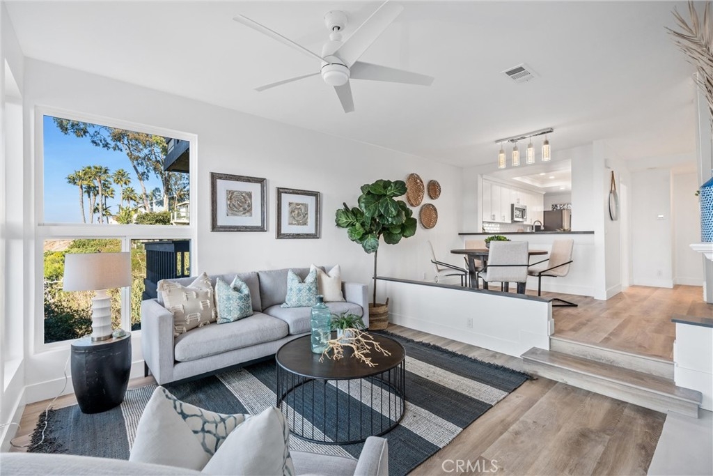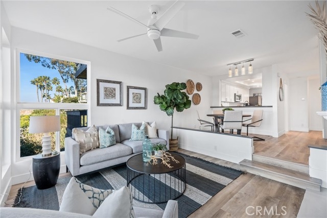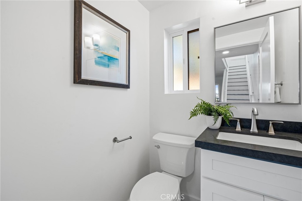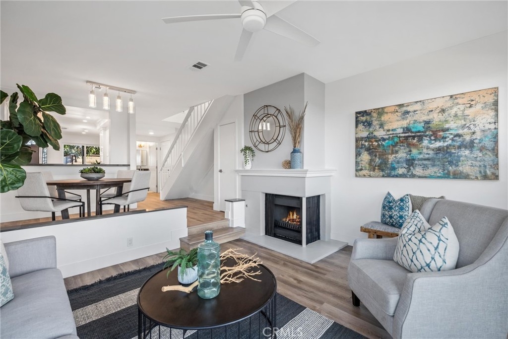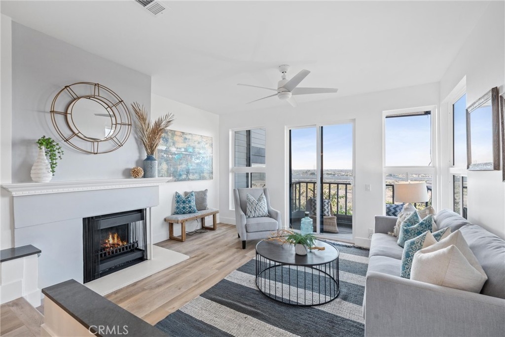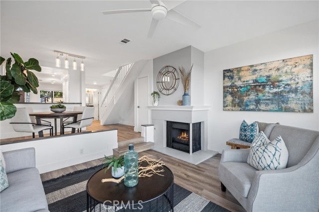 Be the first to live in this beautifully renovated property situated on an elevated lot in the Mesa Bluff community of Costa Mesa. Enjoy stunning views of the nature preserve during the day, then beautiful sunsets from your private balcony in the evening. Nearly everything in the home has been renovated, including the luxury vinyl flooring, recessed lighting, shaker cabinets, quartz countertops and custom windows. The kitchen, dining area, living room and balcony all flow together on the main floor, along with a half bathroom and fireplace, making this space perfect for entertaining guests. Up the stairs you will find the primary bedroom with the same fantastic views and exceptional natural light, along with the ensuite primary bathroom, boasting a dual vanity and walk-in shower. The secondary bedroom sits on the opposite end of the home with access to its own full bathroom. For maximum convenience, the washer and dryer hookups are also located on the second floor. This unit is perfectly situated in close proximity to its detached garage with new epoxy flooring, just steps from the front door. Enjoy the local parks and nature preserves or utilize the trails to easily access the beach.