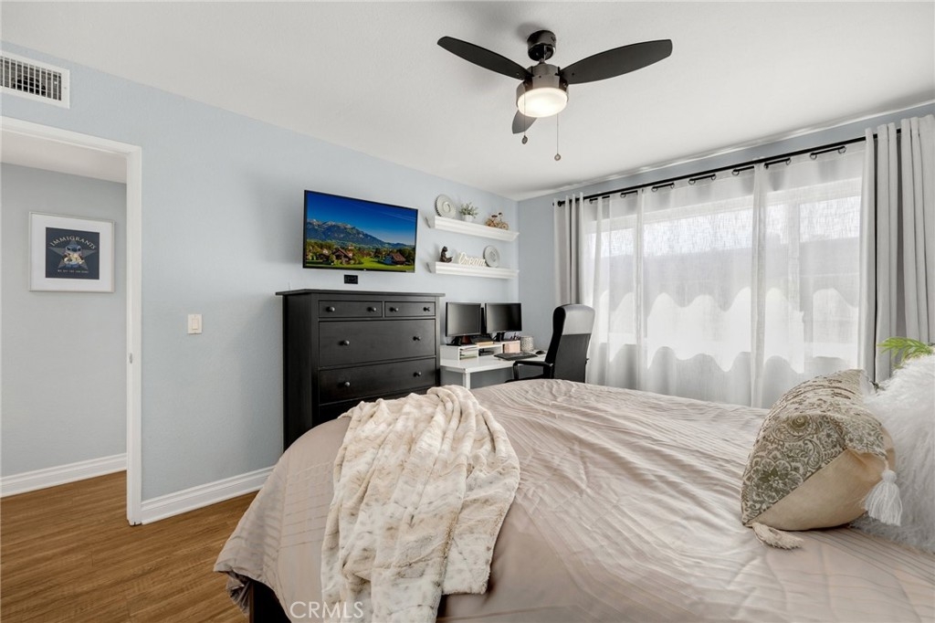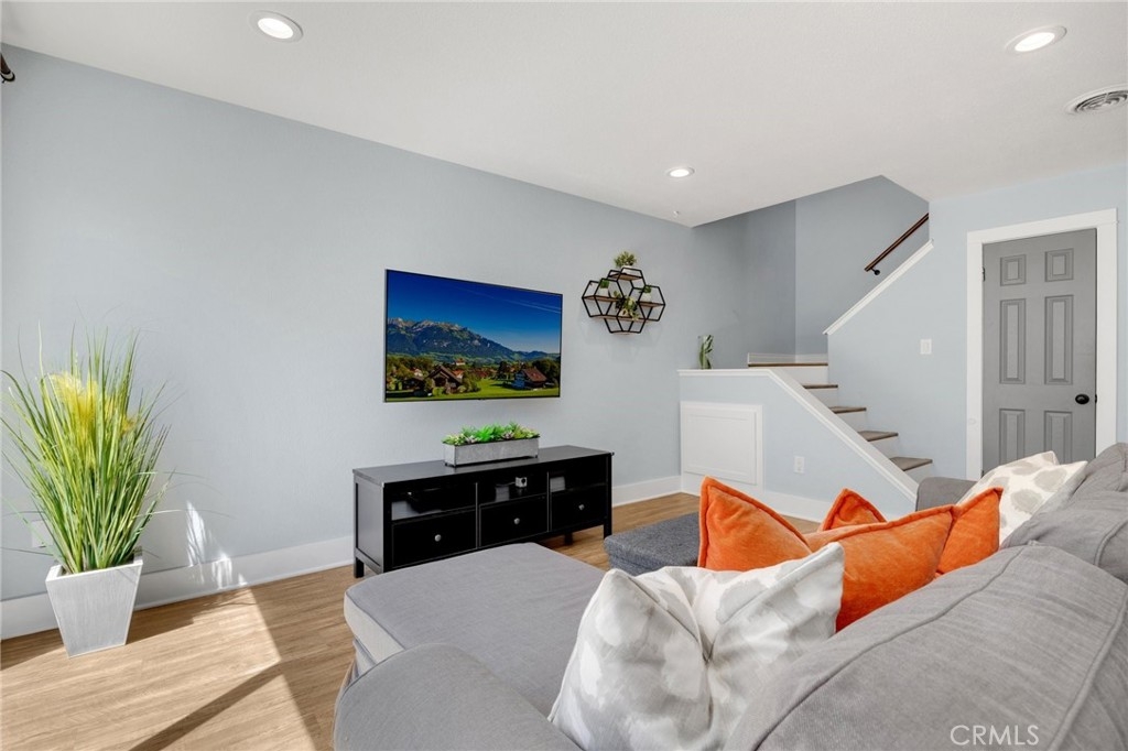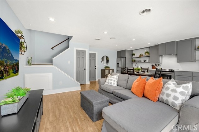 Welcome to Mesa Verde Villas! This turnkey townhome-style condo offers a modern living experience with all the conveniences you desire. Step inside to find a beautifully renovated interior featuring wide plank contemporary flooring that flows seamlessly throughout. The open concept layout creates a spacious and inviting atmosphere, perfect for entertaining guests or simply relaxing in style. The heart of the home is the stunning kitchen, complete with sleek floating shelves, stone counters, stainless steel appliances, and ample counter space for meal prep. Enjoy the abundant natural light flooding in from the sliding doors into your living area. The bedrooms are generously sized, providing comfortable retreats at the end of the day and the closets are beautifully organized courtesy of California Closets. The remodeled bathroom is a true oasis, boasting a gorgeous design and plenty of natural light pours in from the skylight, highlighting the beauty of this space. Convenience is key with an attached garage and a designated parking space, along with laundry facilities conveniently located in the garage. Other amenities to highlight are the dual pane windows, recessed lighting and central air and heat. Step outside to your private enclosed patio area, offering a perfect spot for outdoor living and dining. Additionally, residents of Mesa Verde Villas enjoy access to a community pool and BBQ area, ideal for enjoying sunny days and creating lasting memories with family and friends. Don't miss out on this opportunity to own a move-in ready home in a highly desirable location in close proximity to schools, restaurants, shopping and convenient freeway access for commuters.