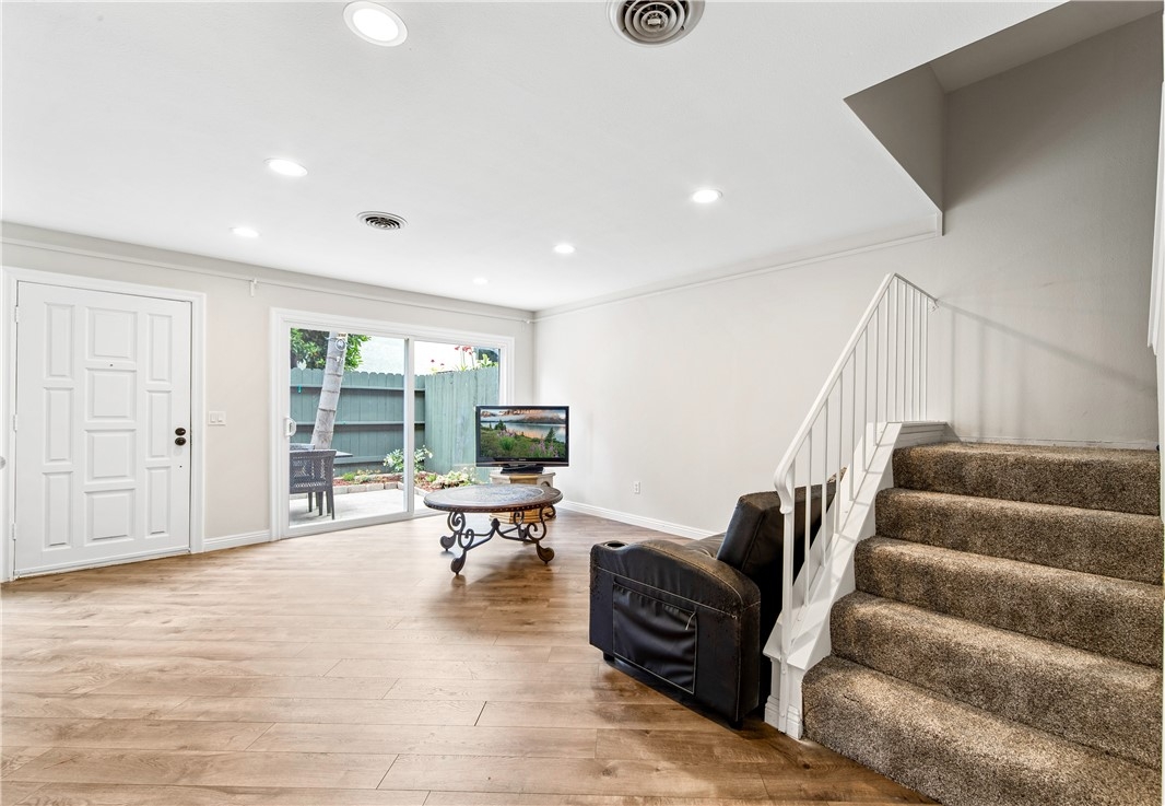 Welcome to Mesa Verde Villas, where coastal charm meets convenience. This inviting 2-bedroom, 1-bathroom condo welcomes you with fresh paint throughout. Step inside to discover upgraded floors and a newly carpeted staircase. The bathroom has been thoughtfully upgraded, newer A/C unit, attached garage features laundry facilities and additional parking is available with an adjacent spot for added ease. Private, enclosed patio is accessible via sliding glass door and front door. The community amenities include a refreshing pool and inviting BBQ area, perfect for gatherings with friends and family. Located close to the 405 Freeway, around the corner from TeWinkle Middle School and a mere 7 miles from the iconic Huntington Beach pier, this property offers the ultimate blend of comfort and coastal living. Embrace the laid-back lifestyle, where beach days and sunset strolls are just moments away.