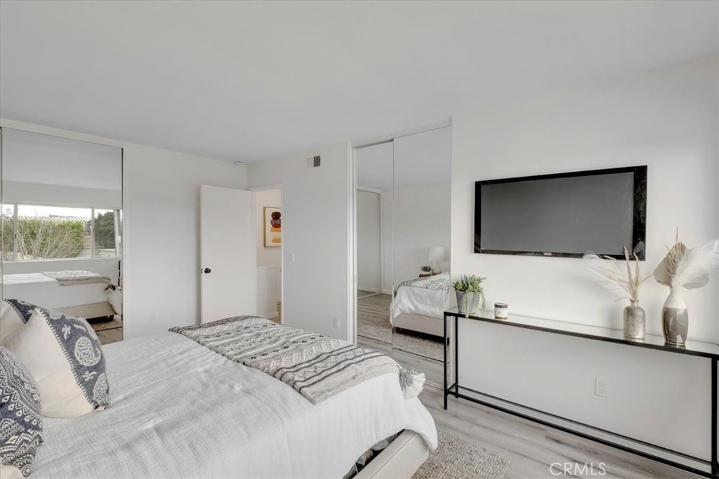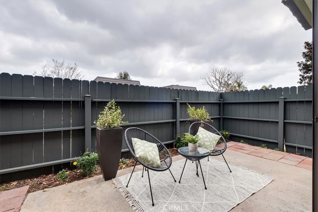 An exceptionally rare opportunity in this market is here. This is your chance to own a beautifully remodeled end unit in the Mesa Verde Villas community! The lower level is a charming open space consisting of a wide living room, separate dining area, guest bathroom, and kitchen. Just off the living room is an expansive private patio completely paved with concrete. The kitchen conveniently has direct access to your private garage and is completely upgraded boasting amenities such as: gleaming white stone counter tops, stainless steel appliances and hood vent. Modern light wood-tone cabinetry, and a massive sink. Upstairs you will find two huge bedrooms with mirrored closet doors and a gorgeous full bathroom with a granite topped vanity and custom tile wrapped shower/tub combo. The Mesa Verde Villas community offers a community pool and BBQ area as part of your association dues. Conveniently located near freeway access, incredible dining, Mesa Verde Country Club, SOCO, The Camp, and South Coast Plaza. Mesa Verde is one of the hottest rising areas in the city of Costa Mesa, this is an INCREDIBLE chance to be a part of this coveted neighborhood.
