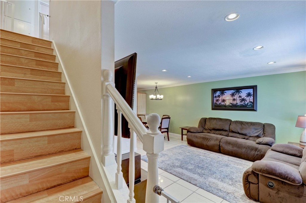 Don’t miss your chance to see this 3-bedroom, 2 bath two-story townhome in the popular Monticello Townhomes community. Conveniently located by the 405/55/73 freeways and just a quick drive to shops and only 5 miles to the beach, this is a great deal for a 3 bedroom in Costa Mesa. The first floor consists of an open living/dining/kitchen plus a main level bedroom and bathroom with shower. Check out the upgraded maple wood cabinetry with display cabinets. The first floor bedroom was expanded for extra functionality and offers 2 closets plus a private entrance. A covered breezeway with laundry and skylight leads to the attached 2-car garage, which is extremely convenient. Upstairs, there are 2 spacious, light-filled bedrooms and a shared hall full bathroom. One of the special features of this home is the spacious balcony, which provides a sunny outdoor space for your enjoyment. The home also comes with a parking permit for the community and there is ample street parking just steps from your front door. This sought-after community has low HOA dues (which includes water and trash) and excellent amenities including 2 pools, 2 hot tubs, and a clubhouse. Some other highlights include granite counters, crown molding, recessed lighting, smooth ceilings, tile and laminate flooring (no carpet), dual pane windows, and a newer water heater. FHA and VA loans OK! What a find – make an appointment to see it this weekend! See Virtual Tour: https://vrtours.mariajacoby.com/tours/URKROiY0T
