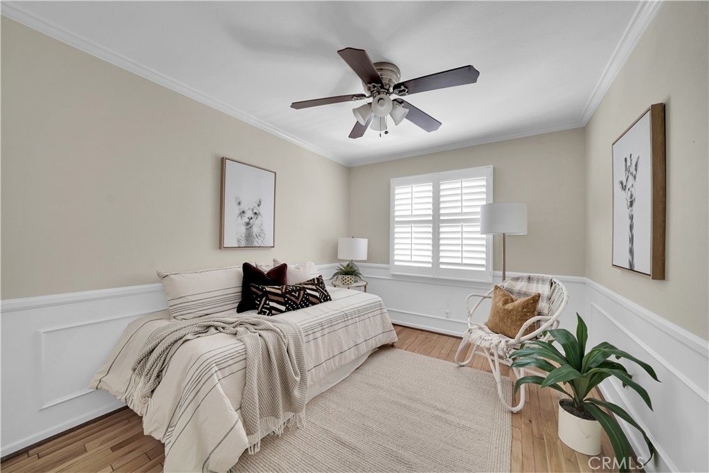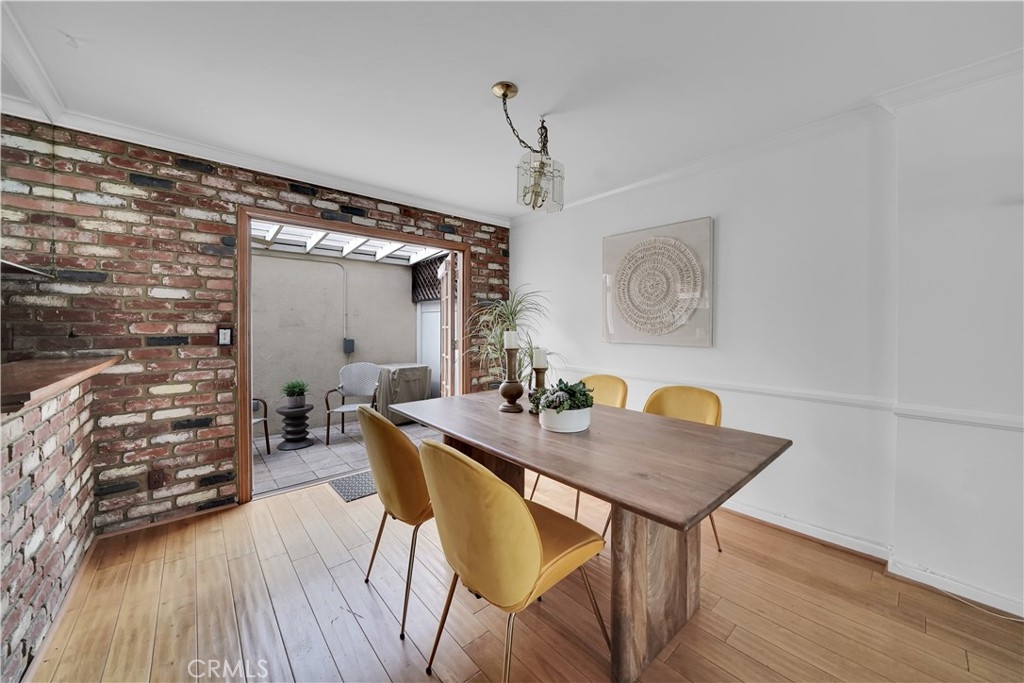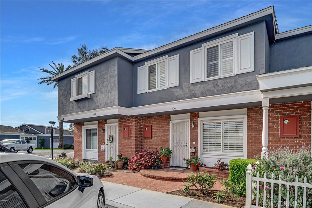 Charming mid-century-style townhome with inviting brick entry in the popular Monticello Townhomes community of Costa Mesa. This two-story home is the largest 3-bedroom floor plan in the complex and features a sprawling living area with engineered wood floors and elegant chair rail as well as crown molding. The living room flows seamlessly into the dining area and opens to the rustic kitchen. The unique brick accent wall gives a traditional old-world feel and feels like a Big Bear escape - or you can redesign to your liking - the options are endless! There is recessed lighting in the kitchen and the refrigerator is included. French doors open to the private patio, which leads directly to your 2-car garage with plenty of storage space. The sunlit patio has a shade cover and ceiling fan to create a cozy, welcoming extension of the living space - perfect for drinking your morning cup of coffee or unwinding with a glass of wine. A bathroom with shower completes the main level. Upstairs there are three light and bright bedrooms. The primary bedroom has a walk-in closet and PRIVATE EN SUITE bathroom, which is rare to find in this neighborhood. The two remaining bedrooms have wood floors, detailed moldings, and plantation shutters. This home offers a cool perk - central air conditioning for the hot summer days that are ahead. Freshly painted almost entirely throughout with modern white tones and several updated dual pane windows. There is the potential to create a fenced in front area as well with HOA approval. Feel like you are living on a quaint city street with views of the community and easy access to the amazing amenities - 2 pools, 2 hot tubs, and a clubhouse that residents can rent out. The HOA is one of the lowest in the area for all that it provides and the dues include water & trash too! The community was recently freshly painted, which has enhanced the curb appeal tremendously. Don't miss the laundry hookups that are located in the closet on the patio. No land lease. No Mello Roos. These units make excellent investments as well with Vanguard University and Orange Coast College nearby. One parking permit included for any permit parking space on first come first serve basis, plus this unit is conveniently located near guest parking. Ok for FHA and VA buyers. Close to freeways, beaches, shops, restaurants, nightlife, schools, airport and more - the location is a 10! At this price, this one will sell quick so get your offer in ASAP!