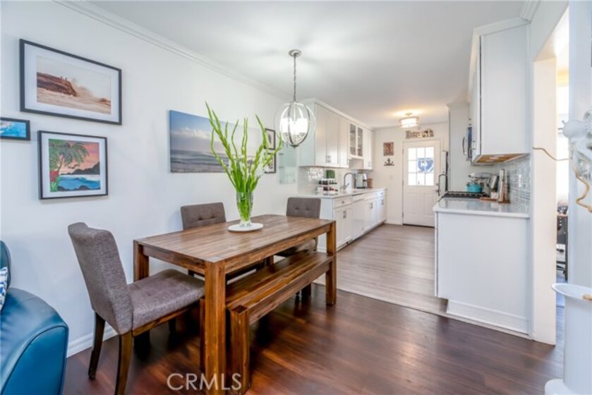 Welcome home to your beautifully remodeled 2-story home in the highly sought-after Monticello community. The beautiful porch welcomes you to this move-in ready 3 bedroom / 2 bath home featuring an upgraded kitchen with beautiful quartz countertops, white shaker cabinets, glass tiled backsplash, new vinyl flooring, and stainless-steel appliances. Making this the most popular floorplan in the community is a main-level bedroom with laminate flooring, crown molding, and an adjoining 3/4 bathroom. The bathroom features a walk-in shower, updated vanity, and light bar. The oversized living room boasts dark laminate flooring, scraped ceilings, crown molding, ceiling fan, and plantation shutters. The upstairs features two spacious bedrooms. The master with mirrored closets, ceiling fan, and carpet. The other with dual closets, laminate flooring, and ample natural light. Enjoy your private patio ready for entertaining conveniently located between your home and your two-car garage. This home has it all with scraped ceilings, crown molding, ceiling fans, and custom paint. The community, which is being completely repainted, features two pools, spa, clubhouse and a low HOA that includes water and trash. Don't miss this "Pride of Ownership" neighborhood close to shopping, restaurants, Orange Coast College, Vanguard University, Newport Back Bay, Orange County Fairgrounds, freeways, and only a 10-minute drive to the beach.