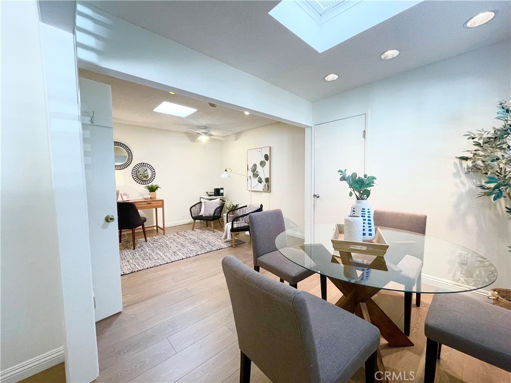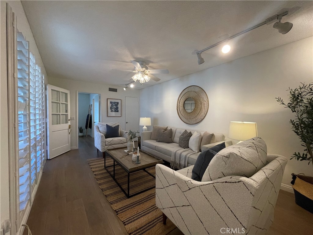 Are you looking to fall in love? Meet your match at 2340 Richmond Way in popular Costa Mesa! This single-story end unit has no neighbors above and feels like a private cottage! With fresh white paint, modern wide plank farmhouse style laminate flooring and 4-inch baseboards throughout, this home has some beautiful updates with a touch of retro flair that adds character. Versatile, unique layout - this 2-bedroom plan has been reimagined. The 2nd bedroom has been transformed into a den (with closet) by removing one wall so that it opens to the dining area and could easily be converted back – French doors would add to the amour. A smartly added dining area/flex space allows direct entry into the home from the garage, which is rare to come by in this community. Lovely plantation shutters and upgraded dual pane windows throughout plus 2 skylights. There is also a cozy front porch with room for seating. In fact, many units have extended the outdoor living and fenced in a front yard area with HOA approval so there is great potential for that too! As an added bonus, this home has central air for the hot summer days ahead! The 2 bedroom areas and bathrooms are located on opposite sides of the home providing an ideal setup for privacy or roommates. Excellent rental potential by Vanguard University and OCC. Huge attached 2-car garage with laundry. Refrigerator, washer and dryer are included too! The Monticello Townhomes is a charming community located in the heart of Costa Mesa with convenient access to the 55/405/73 freeways. The exterior was recently refreshed and the HOA dues include water and trash plus residents have access to 2 community pools, spas and a Clubhouse (which can be rented for parties). Residents receive one parking pass (first come first serve) as well for permit parking in the community and there is plenty of additional street parking nearby. Minutes from South Coast Plaza, Fashion Island, Back Bay, OC Fairgrounds, John Wayne Airport, shopping & dining on 17th Street, beaches and more! FHA/VA ok. Low HOA dues and an unbeatable price for all that this home has to offer. Cupid’s arrow has struck!