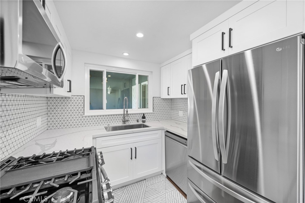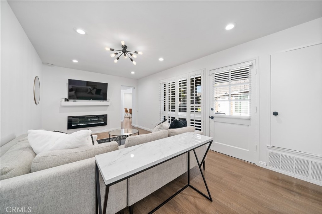 Designer home straight out of a luxury magazine! This recently renovated 2 bedroom and 2 bathroom end unit gem in Costa Mesa boasts a kitchen that's been completely revamped with all new custom cabinets that provide ample storage, extended quartz countertops, top-of-the-line stainless steel appliances, and a custom modern backsplash. Bathed in natural light from a skylight, the kitchen opens into a bright dining area, perfect for entertaining. The living room is adorned with a brand-new fireplace and features newly installed recessed lighting and dual-pane windows offering comfort and energy efficiency. Both luxury bathrooms have been upgraded to include larger vanities and modern tile for the showers. The main bedroom offers a spacious retreat and features a generous closet, providing plenty of storage for your wardrobe essentials. Meanwhile, the second bedroom offers versatility and can easily accommodate guests or serve as a home office. Every inch of this home exudes sophistication, with additional upgrades to the electrical and plumbing systems ensuring peace of mind for years to come. The Monticello Townhomes community provides two pools, spas, and a clubhouse, perfect for hosting gatherings. Plus, imagine the possibilities with the option to build out the home’s front patio for even more outdoor space. Don't miss the opportunity to make this meticulously renovated home yours!