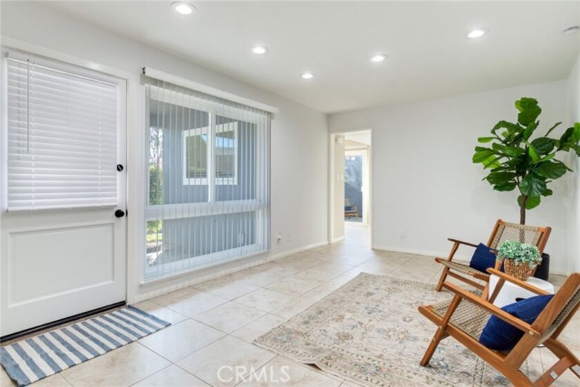 This highly sought-after single-story end-unit in the Monticello community is an exceptionally rare opportunity. Owned and cared for by the same family since it was built, this beautifully enhanced two-bedroom, two-bathroom townhome combines thoughtful modern upgrades with a desirable, private layout. Step inside to a bright and welcoming living space where tile flooring and fresh interior paint set a clean, inviting backdrop. Updated two-panel doors with upgraded hardware and energy-efficient LED lighting throughout create a cohesive, contemporary feel. The dining area flows effortlessly into the remodeled kitchen, showcasing crisp quartz countertops, refaced solid wood cabinet doors, a new stainless steel sink and faucet, a new garbage disposal, a brand-new dishwasher, and new stainless steel stove and microwave—delivering both style and function for everyday living. Both bedrooms are generously sized and comfortable, featuring new plush carpeting and mirrored closet doors that enhance natural light and openness. The bathrooms feel fresh and refined with new quartz countertops, newly retiled tub/shower surrounds, upgraded plumbing fixtures, new mirrors, modern lighting, and updated faucets—every detail thoughtfully selected. Just off the main living area, the private enclosed patio—finished with new epoxy flooring—provides a low-maintenance outdoor retreat ideal for relaxing, entertaining, or container gardening. The attached two-car garage continues the home’s refreshed theme with new epoxy flooring and dedicated washer and dryer hookups, offering added convenience and functionality. Monticello residents enjoy a friendly and established community offering a gated pool, clubhouse, and low HOA dues—all in a desirable Costa Mesa location minutes from the 55, 73, and 405 freeways. The neighborhood is walkable to Orange Coast College, Vanguard University, and the OC Fairgrounds, close to Costa Mesa’s police and fire services for added peace of mind, and just 5 miles from the beach, making coastal living easily within reach. With its rare single-story design, end-unit privacy, long-term family ownership, and carefully updated interior finishes, 2408 Saratoga Way stands out as a truly special opportunity in the heart of Costa Mesa.