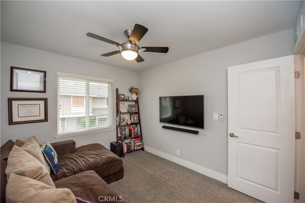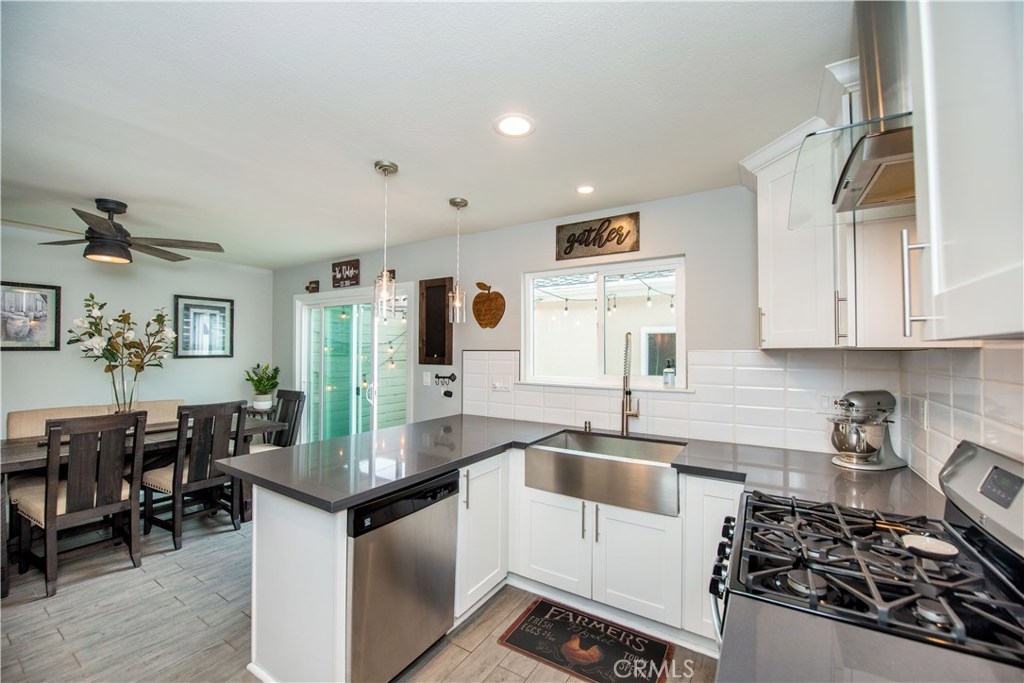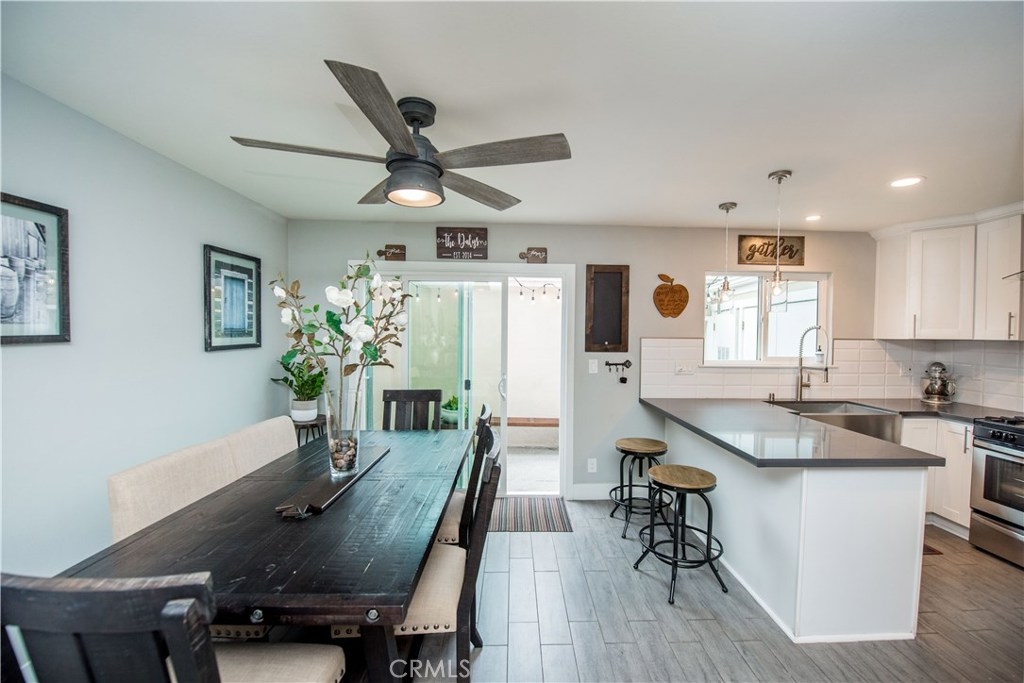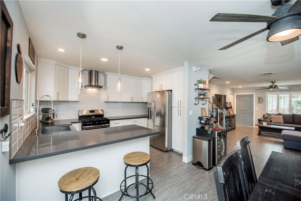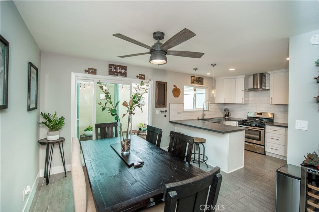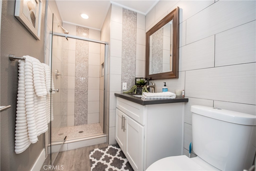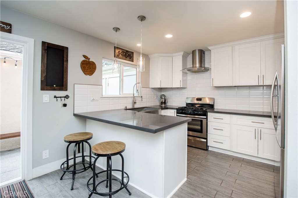 Perfectly upgraded 3 bedroom townhome in the popular Monticello community. The main level is adorned with gorgeous gray-toned porcelain tile floors and features a spacious living room, dining area, gorgeously redone guest bathroom with shower, and the perfect kitchen. The kitchen is absolutely gorgeous, boasting amenities such as: new cabinetry, custom tile backsplash, quartz counter tops, oversized sink, pendant lighting, and stainless steel appliances. Upstairs are three comfortable bedrooms and an additional full bathroom. The slider downstairs leads to a private enclosed patio and your 2 car garage, both of which are coated in a high grade epoxy flooring. Other features include: recessed lighting, custom tile walls and showers in bathrooms, Barn door for walk in closet, and more! HOA dues include water and trash. Located conveniently near freeway access, the Orange County Fairgrounds, and amazing shopping and dining. This is one opportunity you do not want to let pass you by