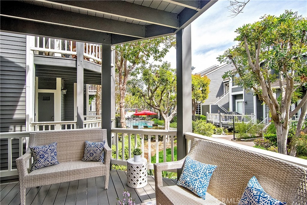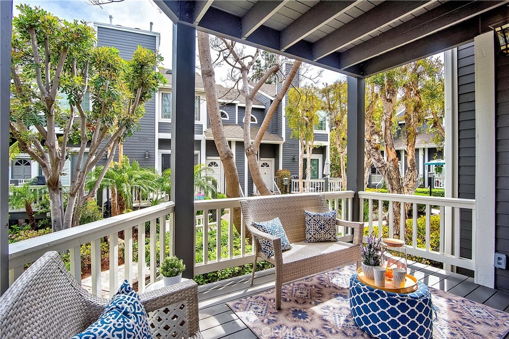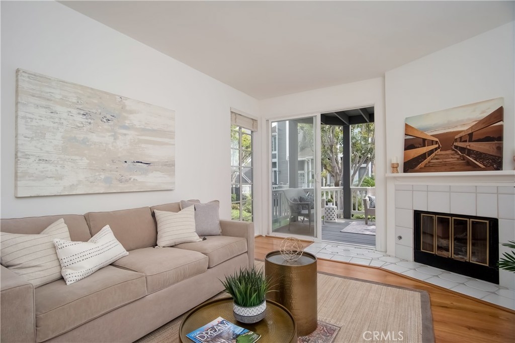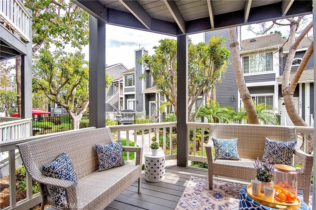 Nicely upgraded two-bedroom condo in Newport Landing. As you enter the home you are welcomed by an open floor plan and a clean color palette. The kitchen has been tastefully updated with granite countertops, full mosaic backsplash, recessed lighting and new appliances. The living room offers high ceilings, a gas fire place, beautiful laminate wood floors, a large picture window and a sliding glass door leading out to a relaxing patio. The large master bedroom features high ceilings, new carpet and an updated master bath with a beautiful walk-in shower. In the hall there is a full guest bath and inside laundry closet with a washer and gas dryer that is included. The second bedroom offers new carpet and ample closet space. The home also features a newer furnace, dual pane windows, freshly painted interior and 2 separate single car garages that have ample storage space. Located in a relatively small community with 88 total units, two pools and two hot tubs. It is centrally located within walking distance to Newport Back Bay, parks, great restaurants, and OC Fair grounds. The location also provides easy access to 405, 55, and 73 freeways, John Wayne Airport, and South Coast Plaza. Welcome home.
