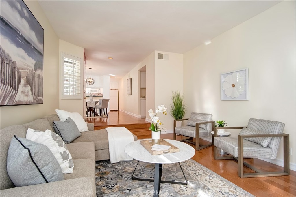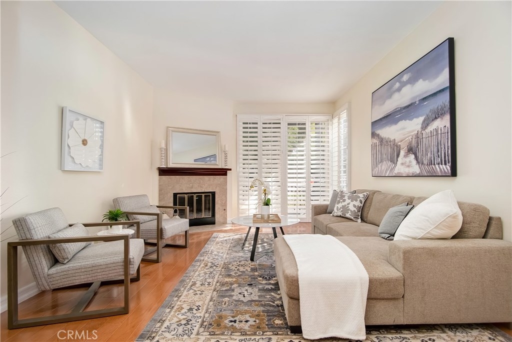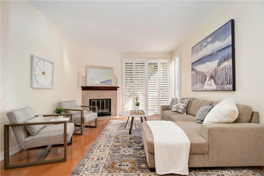 Nicely upgraded two-bedroom end unit situated in one of the best locations in Newport Landing. As you enter the home, you are welcomed by an open floor plan and a clean color palette. The kitchen was remodeled this year with brand new custom cabinets, recessed lighting and some new appliances. The living room offers high ceilings, a gas fire place, beautiful wood floors, a large picture window and a sliding glass door leading out to a relaxing patio. The large master bedroom features high ceilings, wood floors and an updated master bath with a beautiful walk-in shower. In the hall there is a full guest bath and inside laundry closet with a washer and gas dryer hookup. The large guest bedroom offers ample closet space and lots of natural light. The home features dual pane windows, plantation shutters, new hot water heater and freshly painted interior. Directly below the unit, is a large 2 car garage that has ample storage. Located in a relatively small community with 88 total units, two pools and two hot tubs. It is centrally located within walking distance to Newport Back Bay, parks, great restaurants, and OC Fair grounds. The location also provides easy access to 405, 55, and 73 freeways, John Wayne Airport, and South Coast Plaza. Welcome home.