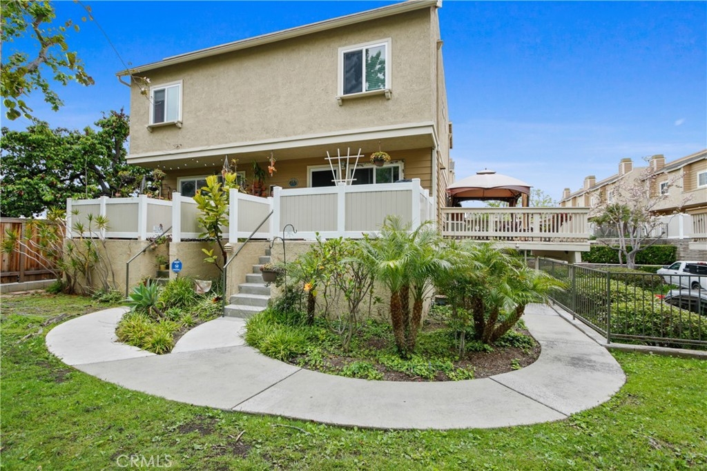LOCATION LOCATION LOCATION...VINYL DOORS & WINDOWS...DOUBLE DOOR ACCESS TO LARGE OVERSIZED PATIO/DECK (22X14) OFF OF LIVING ROOM...GREAT FOR EXTRA LIVING & ENTERTAINING...INSIDE LAUNDRY (WASHER AND DRYER INCLUDED)...UPDATED KITCHEN WITH BREAKFAST BAR...FIREPLACE IN LIVING ROOM...2 BEDROOMS, 2 BATHS UPSTAIRS AND 1/2 BATH DOWNSTAIRS...OVERSIZED SINGLE CAR GARAGE AND ATTACHED CARPORT...LOTS OF EXTRA STORAGE SPACE IN GARAGE WITH SHELVING...WOOD & TILE FLOORING...ASSOCIATION POOL & SPA NEAR UNIT...CLOSE TO SHOPPING, ENTERTAINMENT AND THE BEACH...SMALL COMPLEX...