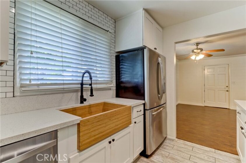 Popular Eastside Costa Mesa – steps from restaurants and hip boutiques on 17th Street! Excellent opportunity to be beach close and adjacent to Newport Heights. SINGLE-STORY home with open concept. Oversized living room with white brick fireplace, modern kitchen, master suite with walk-in closet, updated bathrooms, and inside laundry (included!). Check out the modern kitchen with custom cabinets (including pantry!), stainless steel appliances (fridge included!), quartz counters, subway tile backsplash, and unique farmhouse sink. This end unit feels like its own little beach cottage since it only shares one wall with the community clubhouse. Pool views and close to parking as well – plus this is the only 2-bedroom unit with a PRIVATE one-car detached garage. Freshly painted and offers laminate flooring throughout – no carpet! Charming white brick fireplace and lovely Dutch door. Dual pane windows with plantation shutters. Recessed lighting. Charming small community of just 69 units with peaceful greenbelts and pool area. Situated in the highly rated and sought after Mariners/Ensign/Newport Harbor High School zone. All at an unbeatable price for Eastside. With the number one rule in real estate being location, location, location, this home certainly fits the bill with easy freeway access, highly rated schools, and being less than 2 miles to the beach.