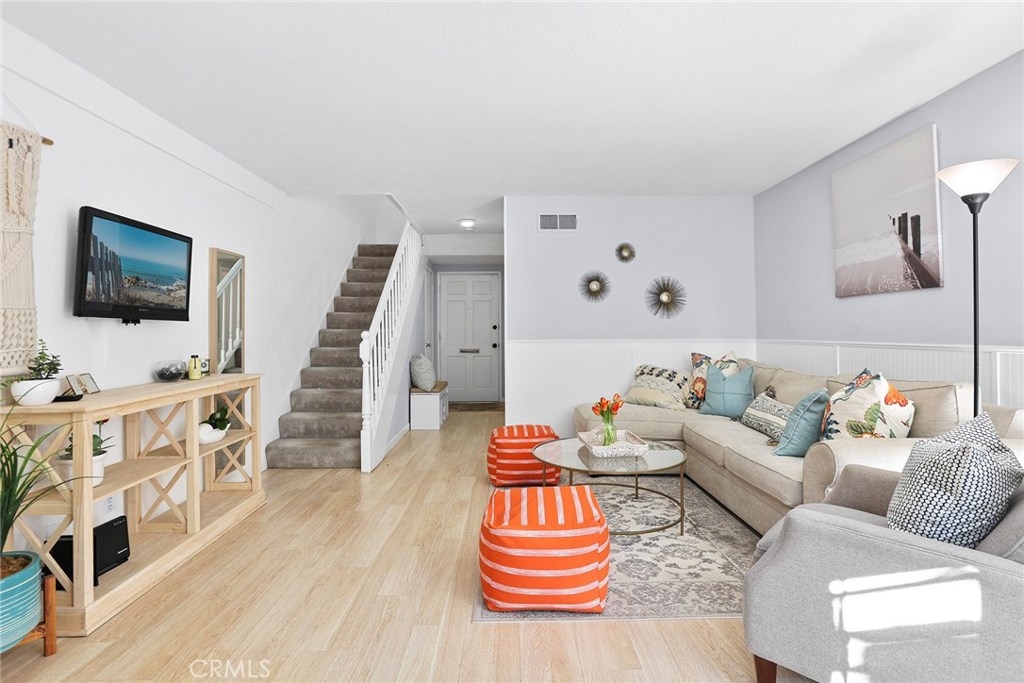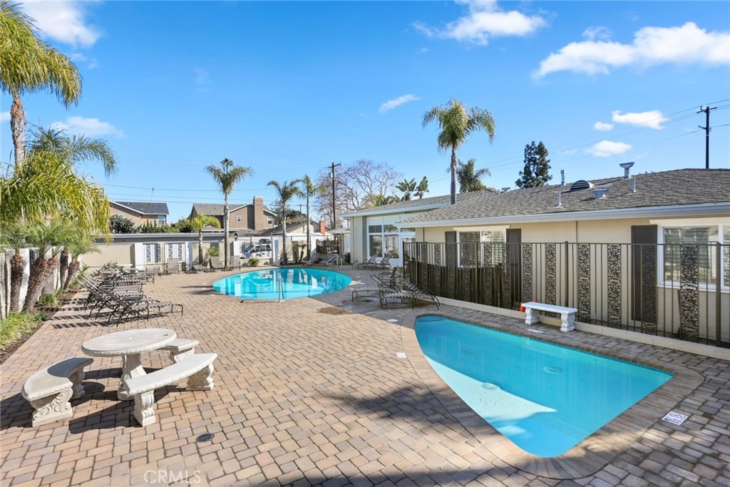 Ideally located just one block away from 17th street sits this beautiful 3-bedroom, 2-bathroom townhome. As you enter the home you will be welcomed by an open family room with wood laminate floors and a gas fireplace. Sliding doors lead out to a private-patio with an enclosed laundry with full size washer and dryer. The kitchen features granite countertops and stainless-steel appliances. The downstairs bedroom offers a recently upgraded bathroom with designer touches while the two upstairs bedrooms each offer large walk-in closets. This well-maintained complex provides meandering walkways, trees, a pool, clubhouse & a relaxing environment to call home.