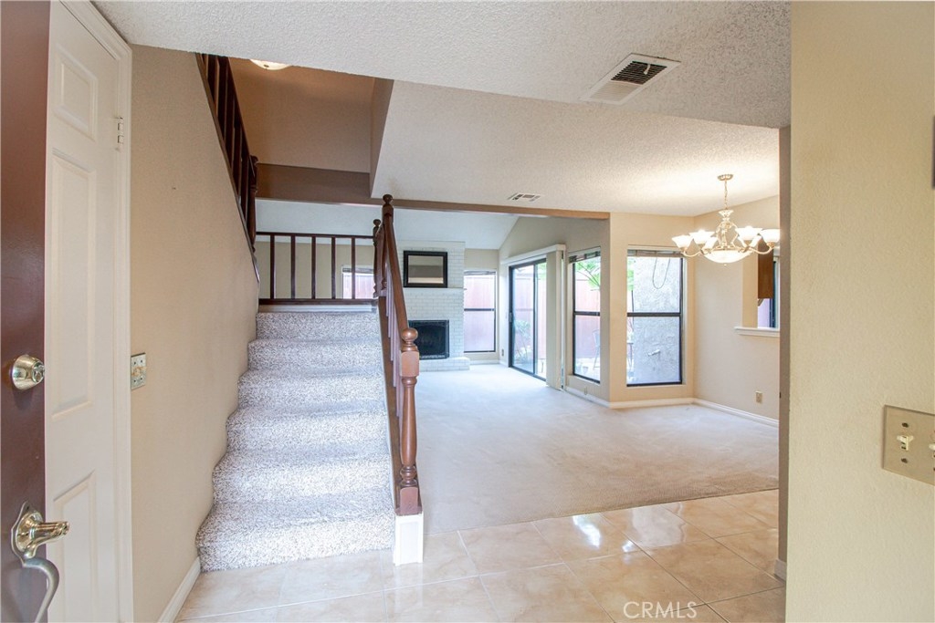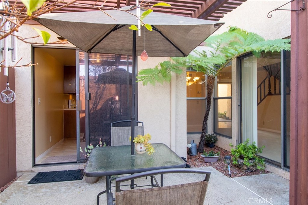 This Townhome is move in ready! Enter into the inviting family room with vaulted ceilings featuring a cozy fireplace and a sliding glass door to a spacious and private covered patio. Perfect for outdoor dining year round. The kitchen has solid wood cabinets and title floor's. Going upstairs, you are greeted by a perfect spot for a home office or kids room. The master bedroom features an oversized closet and an en-suite master bathroom. The generously sized secondary bedroom features a large closet and is adjacent to the spacious bathroom. This home has it all including, lighting throughout, ceilings fans & above the staircase radiating natural light throughout the home. There is also direct access to the two car garage. Close to shopping centers and local beaches.