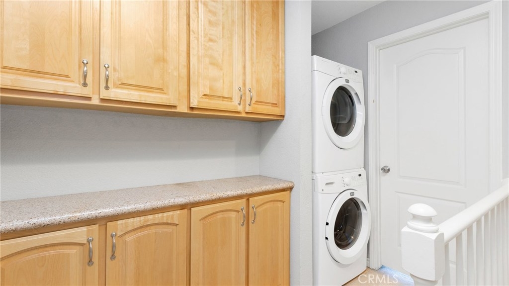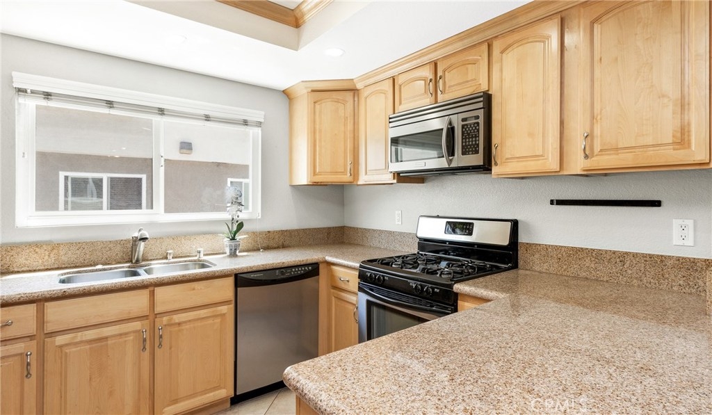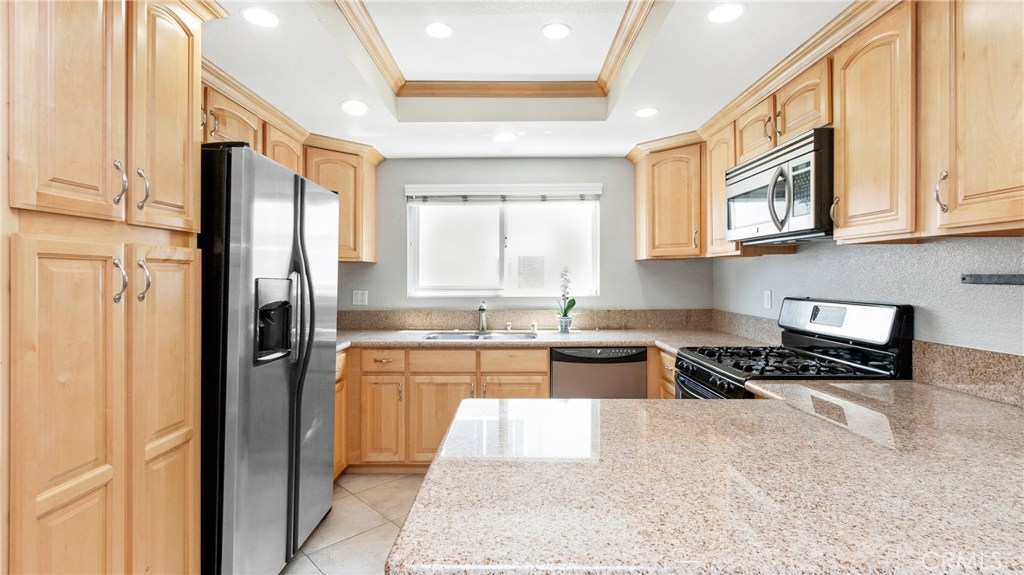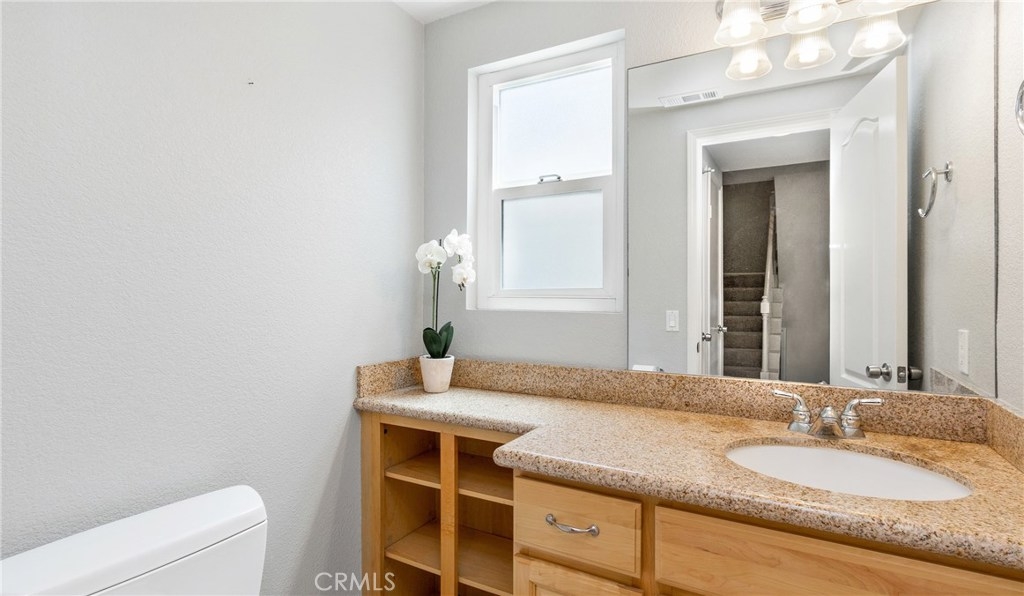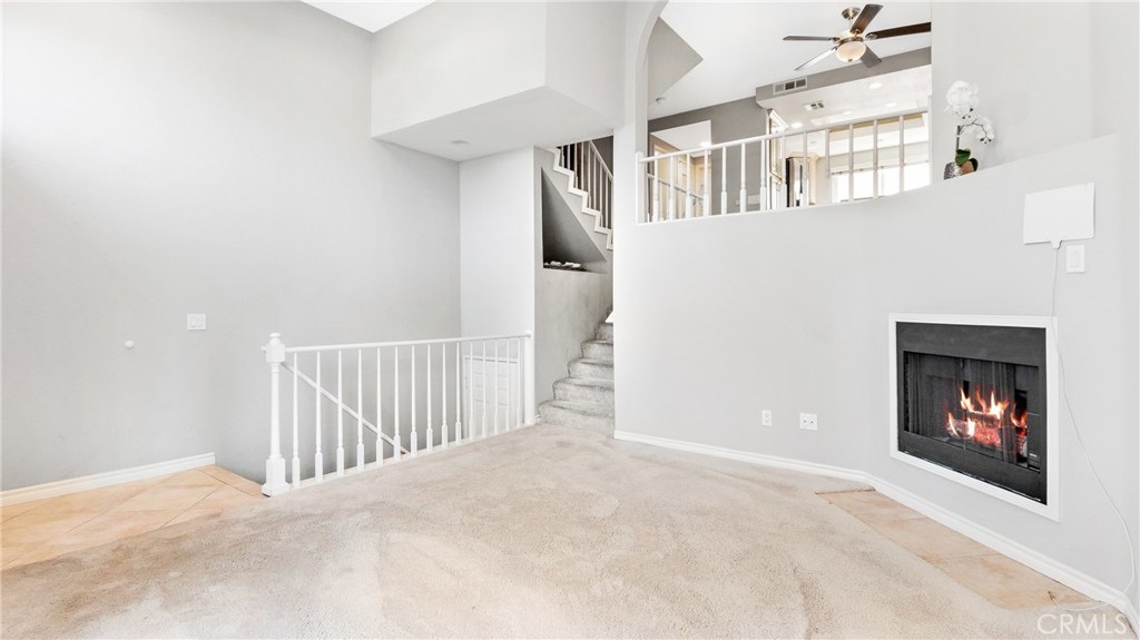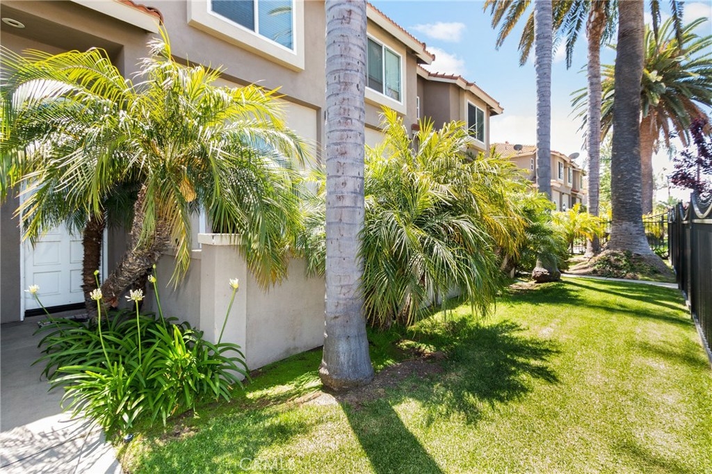 Spectacular, tri-level townhome located in the gated Palermo Townhomes of Costa Mesa. Enter into the open and inviting living room featuring soaring ceilings, a cozy fireplace and sliding doors to the front patio offering lovely coastal breezes. Up a short staircase to the second level, the dining room offers a balcony that opens to the living room below and seamlessly flows to the kitchen, well-appointed with granite counters, stainless steel appliances and recessed lighting. A powder room with a granite-topped vanity completes the second level. Upstairs to the third level, dual master bedrooms each offer vaulted ceilings and their own en-suite full bathrooms. Also featuring stackable laundry upstairs and two convenient carport parking spaces with additional storage. Enjoy the well-maintained HOA which includes water and trash and features lush greenbelts and mature foliage throughout. Centrally located near shopping and dining options, Triangle Square, and just minutes to the beach make for delightful coastal living.