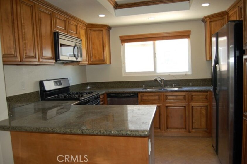 Luxury townhome in a small gated community, which is 1.7 miles from the beach! The unit was completely remodeled in 2007. The living room has wood floors, a fireplace and access to your own private patio. The mid-level features a gourmet kitchen with granite counter tops, custom cabinetry, including stainless steel appliances plus a side-by side refrigerator. The kitchen counter has been extended to allow an eating bar. The adjoining dining room is very large, overlooks the living room below and could operate as an office area. There is a powder room on this level with granite counter tops and custom cabinetry. The top level features two master bedrooms. One with a tub and shower, the other just a shower. Both bathrooms have granite counter tops and upgraded fixtures. Each bedroom has ceiling fans and dual pane windows. There is a large floor-to-ceiling linen cabinets with a granite counter top. Next to the cabinetry is a full-size front-loading washer and dryer that is included. Brand new carpeting up the stairs leads to one of the master bedrooms while the other has wood flooring. All windows and patio doors are dual pane; very new AC & heater; custom paint and all recessed lighting. The two car subterranean garage is attached with direct access into your unit. There is a large private storage area over the garage. The development even has its own dogie park! Located within walking distance to Triangle Square with restaurants, shopping and entertaining. Freeway close.