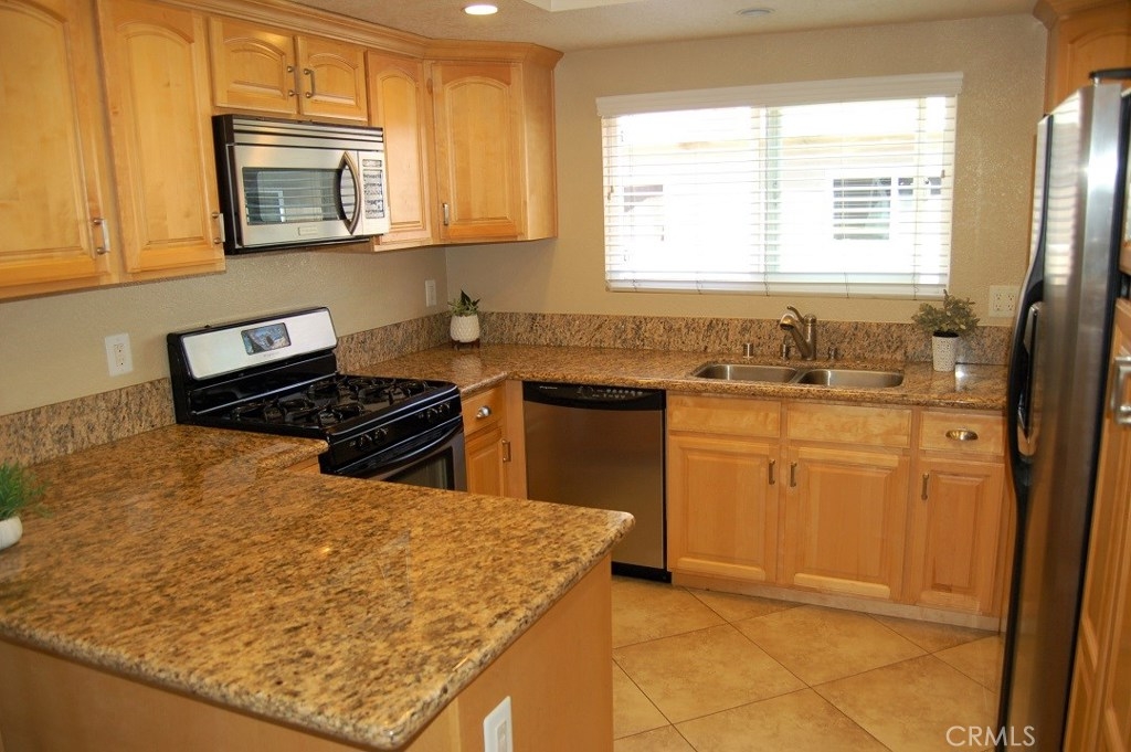 A Merry Christmas Present and a Happy New Year - living in your own luxury townhome! This small gated community is only 1.7 miles from the beach! Completely remodeled in 2007, the living room has new wood laminate flooring and a custom fireplace. From the living room, dual pane glass sliders open to your own private patio. The mid-level features a gourmet kitchen with granite counter tops, custom cabinets and stainless steel appliances - including the side by side refrigerator. The kitchen counter has been extended to serve as an eating bar. The adjoining dining room (with lighted ceiling fan) is very large, could also accommodate an office area and it overlooks the living room. The mid-level's flooring is all tile. There is an upgraded guest bathroom on this level, with a granite counter top and upgraded fixtures. Upstairs are the two private master suites that are separated by floor to ceiling linen cabinets plus a full-size front loading washer and dryer. Each of the bathrooms has upgraded fixtures. The unit has central air conditioning, recessed lighting, upgraded carpeting, designer paint and there is an attached subterranean 2 car garage with direct access into your unit. There is also large storage area in the garage. The development has it's own doggie park and is within walking distance to Triangle Square with restaurants, shops and entertainment. Freeway access is close by. What a great way to begin 2021 in a place you can call . . . . HOME!