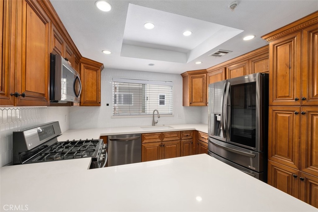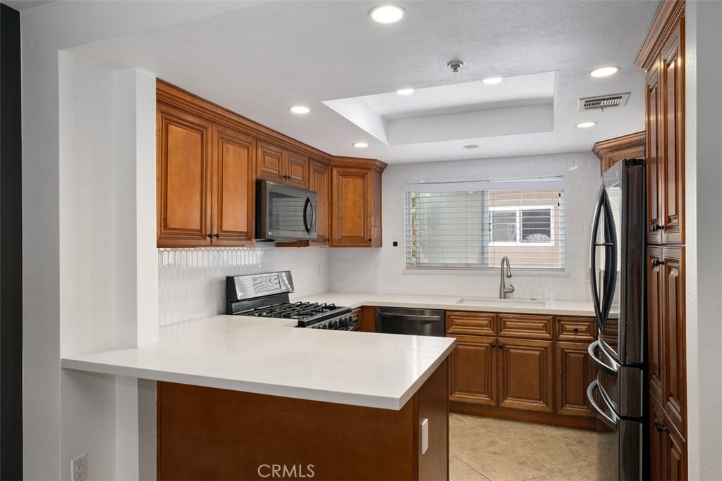 This rarely available turn-key townhome in a private, small gated community is only 1.7 miles from the beach! The unit has been tastefully upgraded throughout: luxurious wood floors, gourmet extended kitchen counter, custom backsplash, new appliances, and upgraded fixtures. The mid-level features a dining room that overlooks the living room below. Living area boasts high ceilings and tons of natural light coming from windows and a private patio. The top level features primary bedrooms with ample closet space. Washer and dryer hookups are also located on this floor. There are two carports with your own private storage area in subterranean garage - direct access into your unit. For the pet lovers, this quiet neighborhood also has its own dog park. This stunning townhome is ready for its next owners to enjoy its prime location, walking distance to Triangle Square with restaurants, shopping, and entertaining.