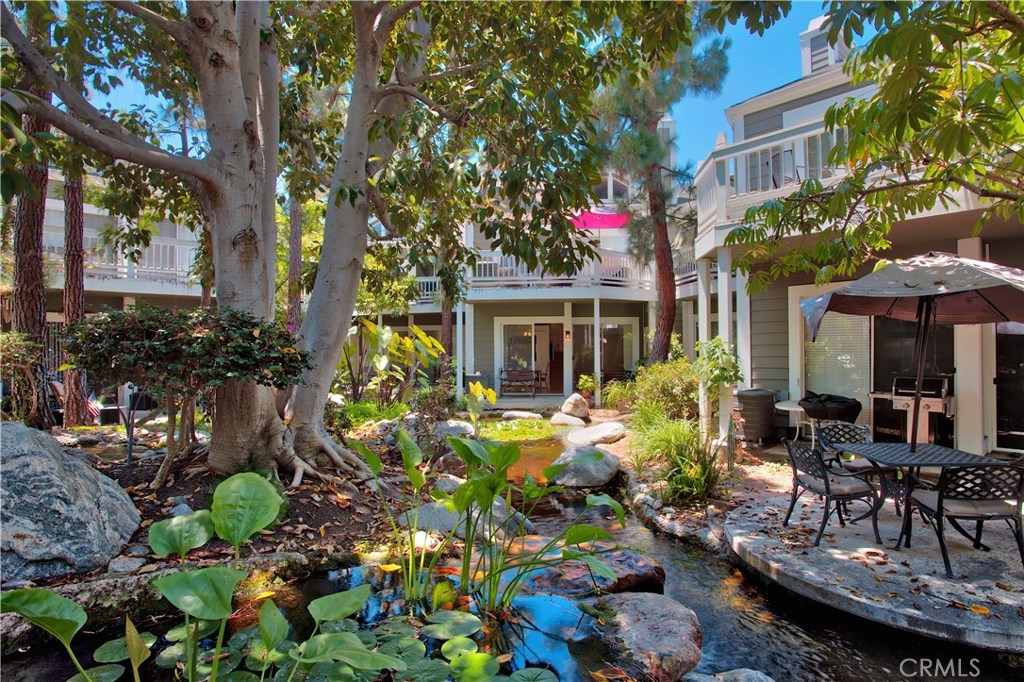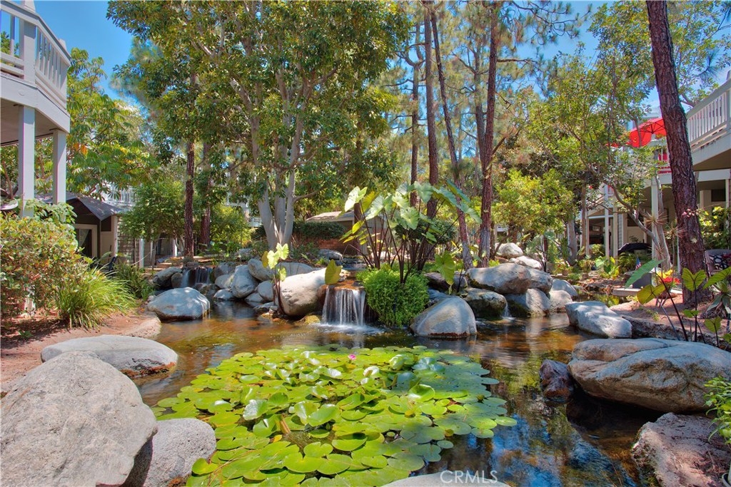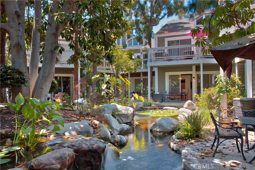 Prime view location in award wining Pentridge Cove - one of the best in the community! Spectacular views of numerous waterfalls, boulders, the pond, mature trees & plants from the large patio, living room, dining area & kitchen! Relaxing water feature (no chlorine) is perfect for outdoor dining, grilling & enjoying. Two large patio doors lead to your own backyard oasis - must see! Great views during the day & at night! Beautifully updated, light & bright with lots of natural light, wide 2 car garage with lots of storage, super clean, freshly painted throughout, 10' high ceilings, modern architectural features for creative decorating, newer stainless steel appliances. Master suite features large dual closets with upgraded mirror doors & organizers, separate tub & shower, new vanity with dual sinks & beautiful granite countertops, LED recessed lights. Maple colored flooring & updated six panel doors throughout, bedrooms have dual pane vinyl windows. Central air conditioning & heating, fireplace, washer & dryer, smooth ceilings, recessed lights, ceiling fans, coat closet & a storage closet in patio area & additional storage in the garage, 4" baseboards. Unique large driveway & plenty of guest parking. Community amenities include a pool & two separate spas, both hot & cold water is included. Great location close to The Lab, The Camp, South Coast Plaza, Segerstrom Center for the Arts, convenient freeway access to the 405/55/73 & John Wayne Airport. Please check out virtual tour!