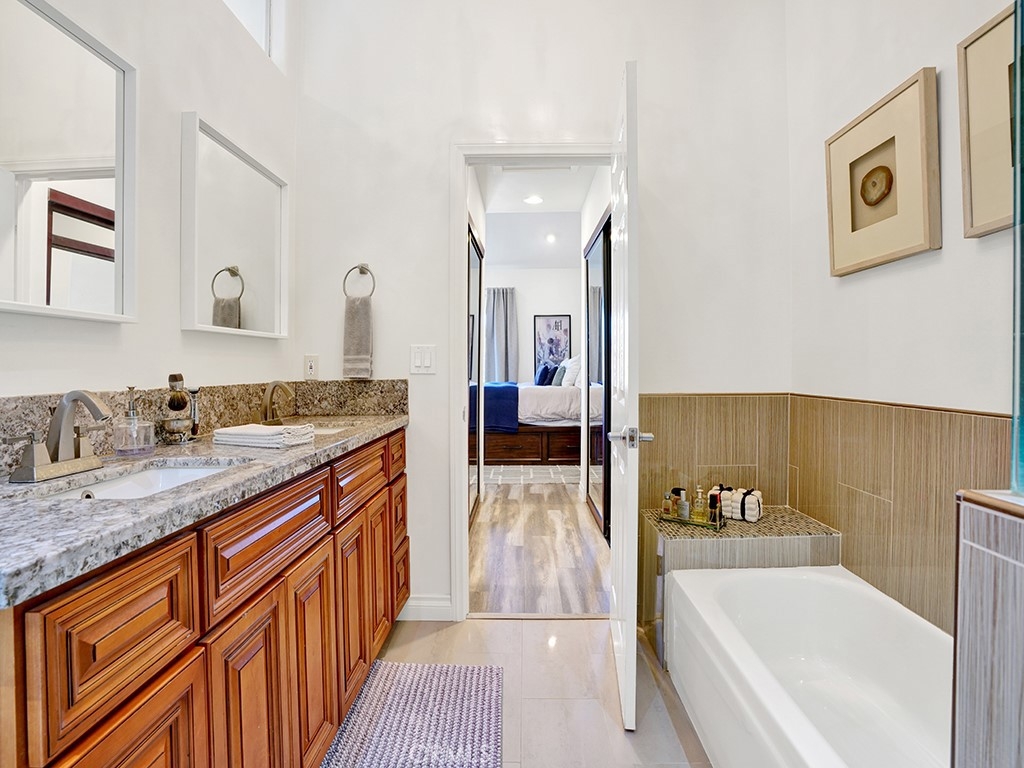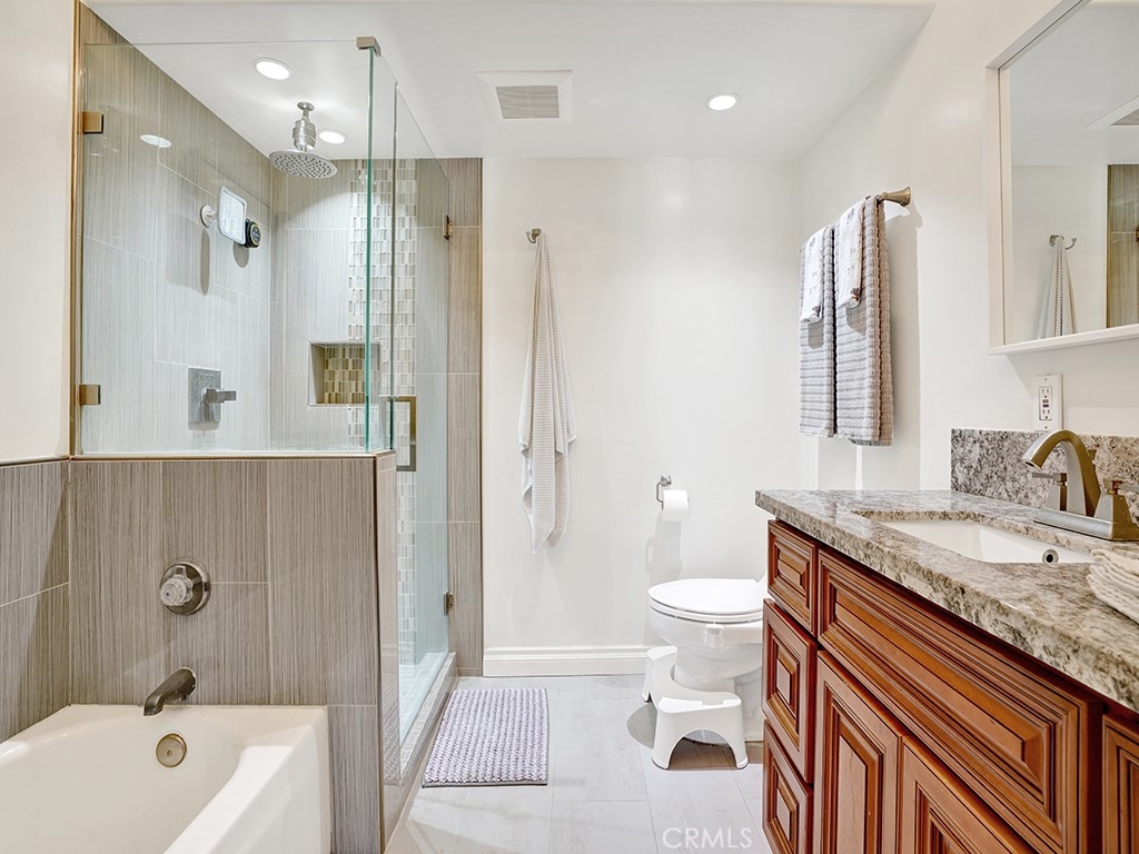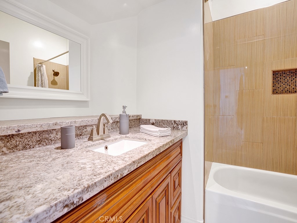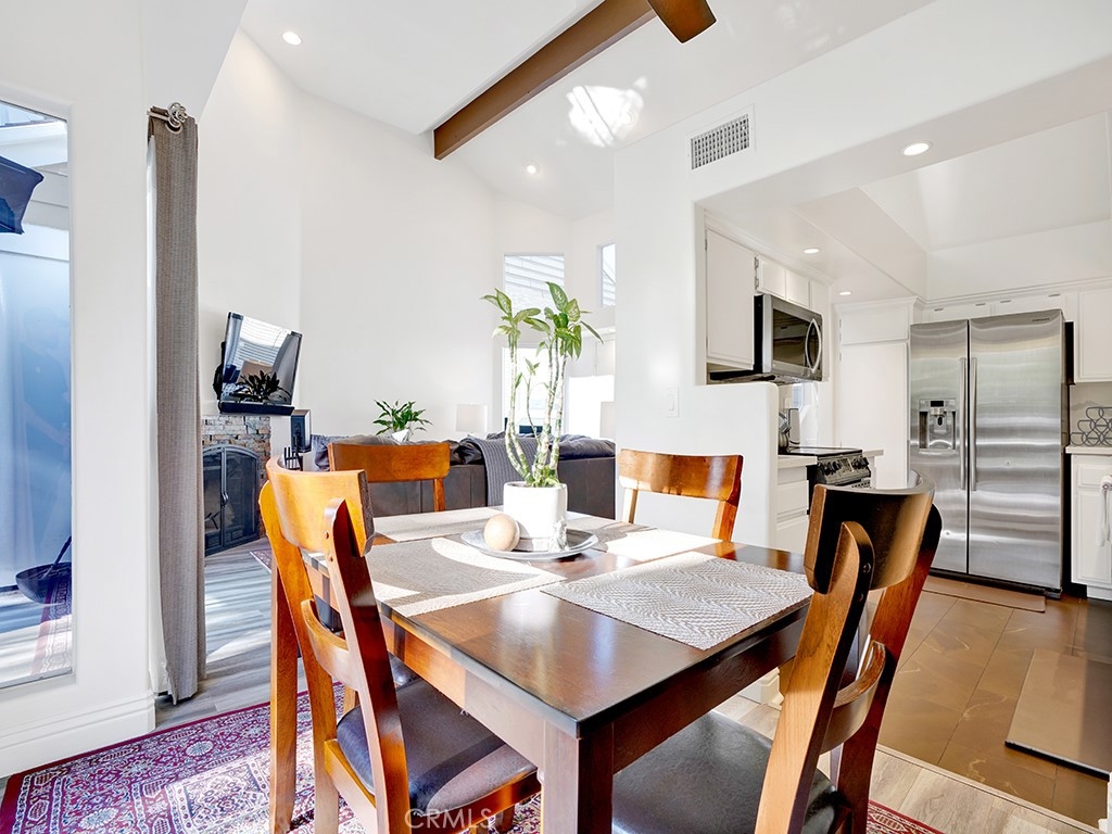 Welcome to 3007 Croyden Bay, a beautifully upgraded home nestled in the tranquil Pentridge Cove community. This spacious residence features a light-filled, open-concept living and dining area that flows seamlessly to a private patio with peaceful views of mature pine trees and the community’s tranquil stream. The kitchen has been tastefully renovated with quartz countertops, stainless steel appliances, and ample storage, offering a modern yet inviting space to cook and entertain. Both bathrooms have been thoughtfully remodeled with designer tile and stone countertops. The primary suite includes a luxurious soaking tub, a walk-in shower, and a dual-sink vanity, creating a true spa-like retreat. Throughout the home, you’ll find newer laminate flooring, vaulted ceilings with clerestory windows, and a cozy wood-burning fireplace that adds warmth and charm. The property also includes a full-size washer and dryer, a newer air conditioning unit, and an oversized two-car garage. Located in one of Costa Mesa’s most desirable communities, this home offers convenient access to local freeways, parks, popular breweries, and some of the city’s best shopping and dining. HOA dues include water, trash, and beautifully maintained landscaping, allowing for an easy, low-maintenance lifestyle.