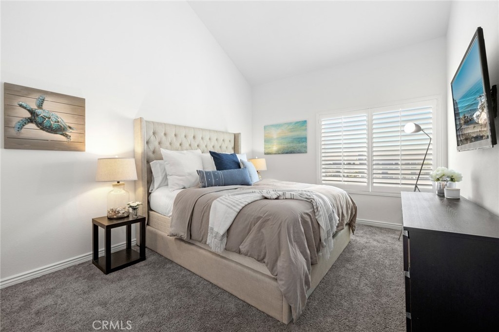 Looking for an ideal Costa Mesa residence where you can simply move in, unpack, and relax? Recently updated, this beautiful penthouse Pentridge Cove condo offers just that since all the hard work has been done for you. Inside, soaring vaulted ceilings span across your entertainment areas, anchored by a dramatic fireplace that lends warmth throughout. High windows and large glass sliders usher in brilliant sunlight and refreshing views as you celebrate with guests in the living area and the adjacent dining area with access to the deck. Steps away, a black and white galley kitchen equips you with complete appliances, plenty of cabinetry, and tiled countertops. Soft carpets and plantation-shuttered windows create a restful atmosphere in your well-sized private retreats, accommodated by a tastefully tiled bath with a shower/tub combo. A 3-pc ensuite and double mirrored closets adjoin your generously sized primary bedroom. Thanks to its fabulous location, The Camp and The Lab are just across the street, plus you have easy access to South Coast Plaza and the freeway. Why just read about it when you can come experience it all for yourself?