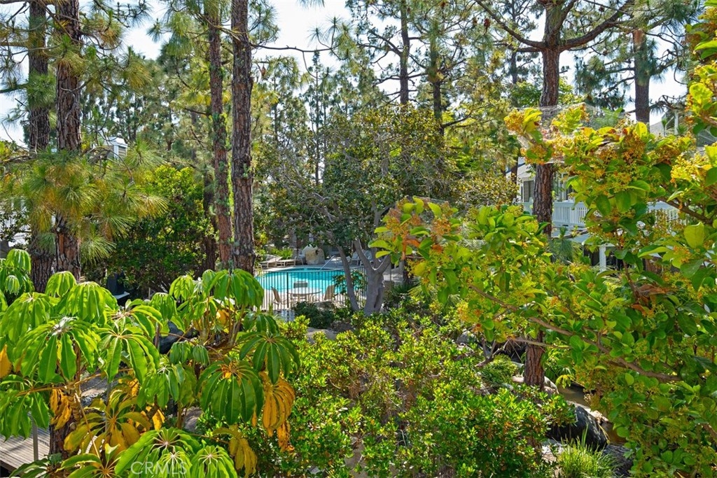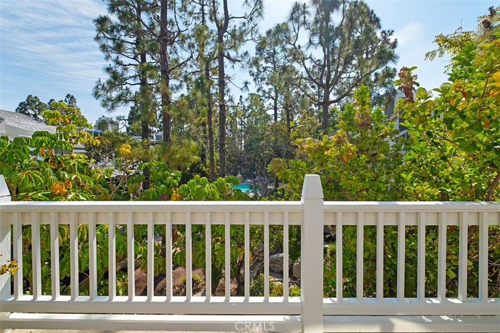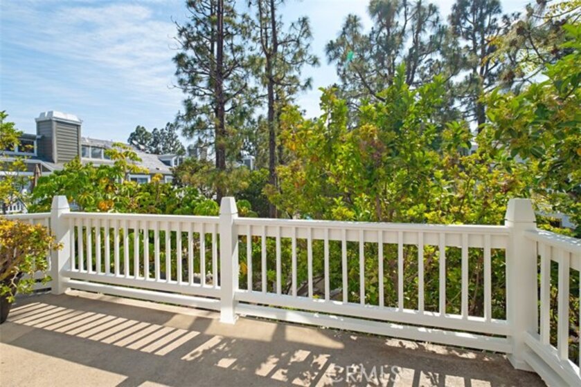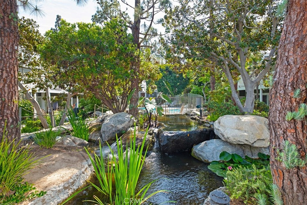 Great quiet end-unit and interior situated location within the Pentridge Cove community. Prospective homeowners will appreciate the amazing location with no neighbors above and the benefit of not directly backing to any major streets. Rarely on the market, this larger 1,200sf floorplan is only 1 of 5 upstairs corner units in the entire Pentridge Cove I community. The home features 2 bedrooms with 2 closets per room, 2 full bathrooms, interior stackable laundry area, and 2 detached garages. Soaring ceilings giving it an open and bright, yet private feeling. Walking through the front door invites you to a large living area featuring a fireplace, sliders to the large private balcony, and a functional kitchen with stone countertops and backsplash. Out the sliding glass door to the large deck, this home boasts one of the best views in Pentridge Cove overlooking serene waterfalls with calming sounds, pool, and greenery. The unique unit location provides rare deck area privacy with no direct adjacent neighboring decks on either side. Two bedrooms including a large master with an attached master bathroom, and both bedrooms featuring vaulted ceilings and plenty of storage space. Walking distance to The Camp & The Lab and conveniently located to 55/73/405 freeways, South Coast Plaza, Segerstrom Center for the Arts, John Wayne Airport, and close to other shopping & dining. HOA covers water, trash, and common areas including the pools and spas. Great starter home or investment property!