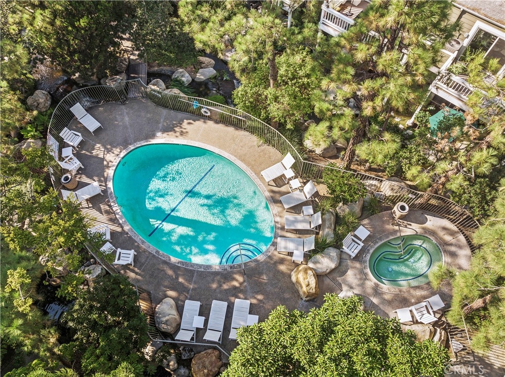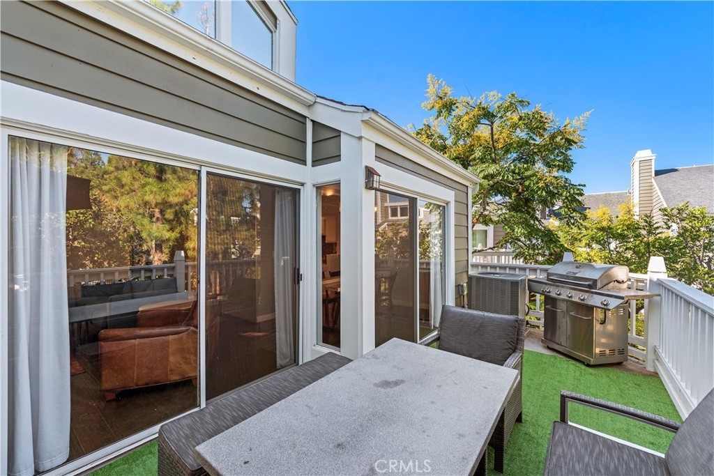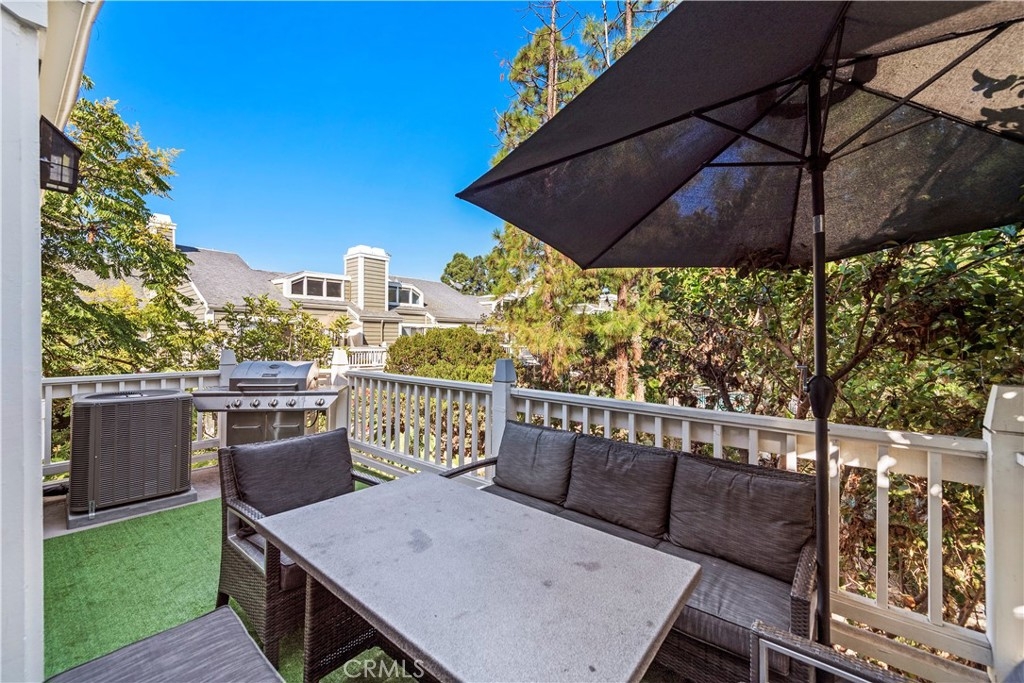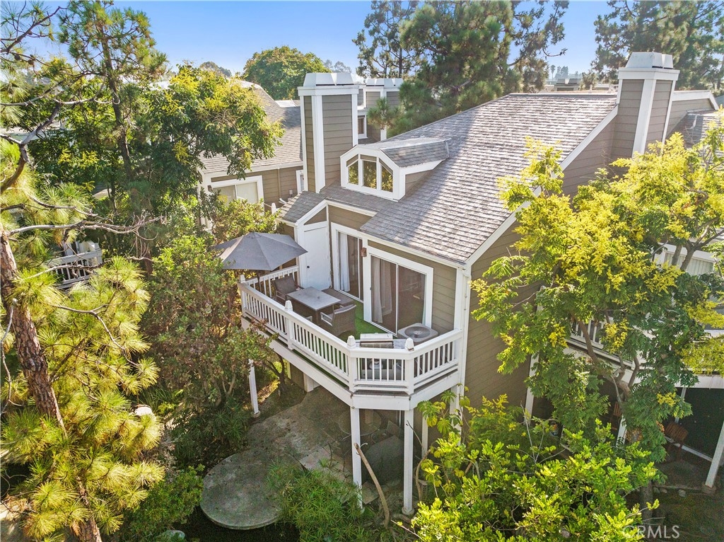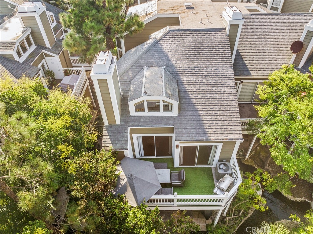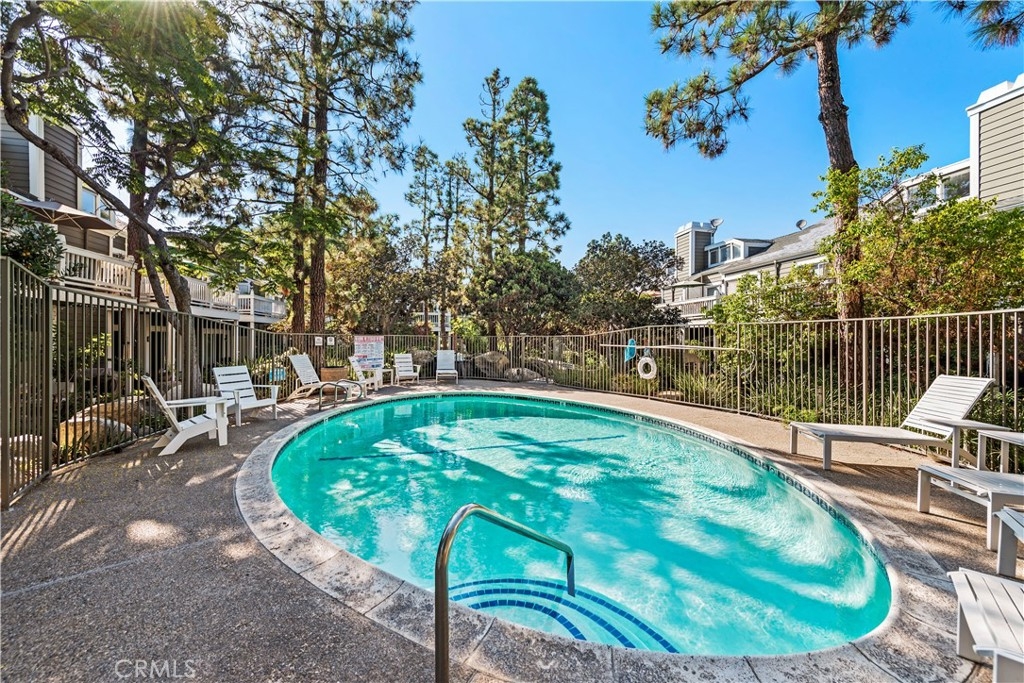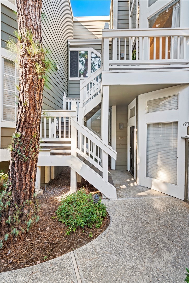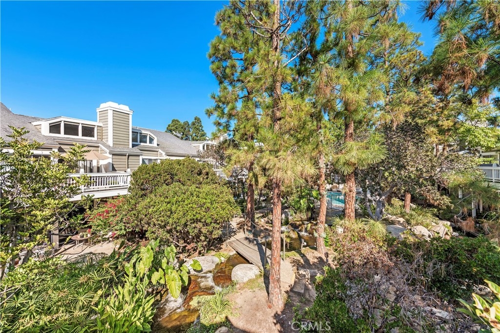 Rare opportunity! Quiet end-unit within the Pentridge Cove community. Amazing interior location with no neighbors directly behind or backing to any major streets. The property boasts an open personality and many upgrades including fresh paint, new carpet, low-maintenance flooring throughout main living areas, newer switches, outlets, and recently replaced efficient heating and cooling system. The highly sought after larger floor plan is only 1 of 5 upstairs corner units in the entire Pentridge Cove I community.  Soaring vaulted ceilings throughout the entire home and many windows let in warm, ambient light year-round with an unmatched tranquility. Walking through the front door invites you to a large living area featuring a fireplace, sliders to the large private balcony, and a functional kitchen with stone countertops and backsplash. The unit delights with one of the best community views in Pentridge Cove, overlooking serene waterfalls. The spacious balcony area has no direct adjacent neighboring decks on either side. Two bedrooms, including a large primary suite and spacious guest bedroom with two closets each for plenty of storage space. Walking distance to The Camp & The Lab and conveniently located to 55/73/405 freeways, South Coast Plaza, Segerstrom Center for the Arts, John Wayne Airport, and close to other shopping & dining. HOA covers water, trash, and common areas including the pools and spas.