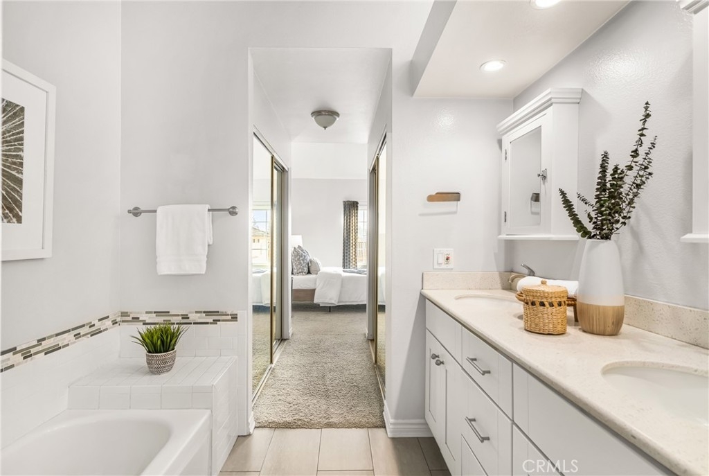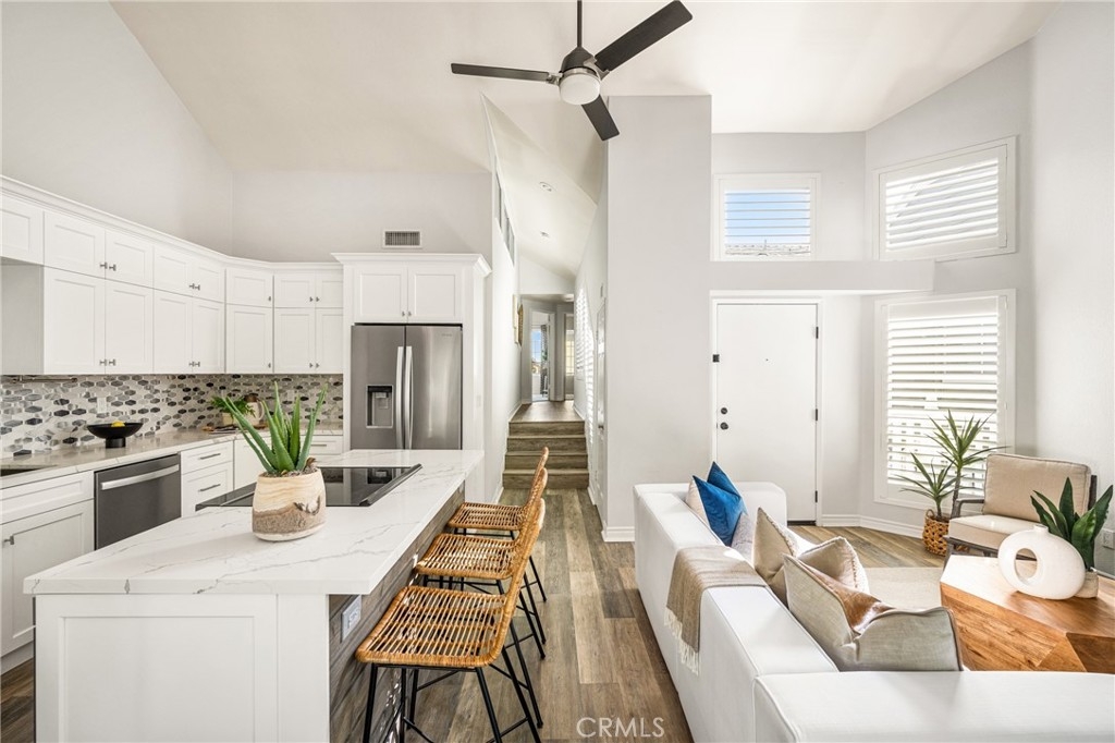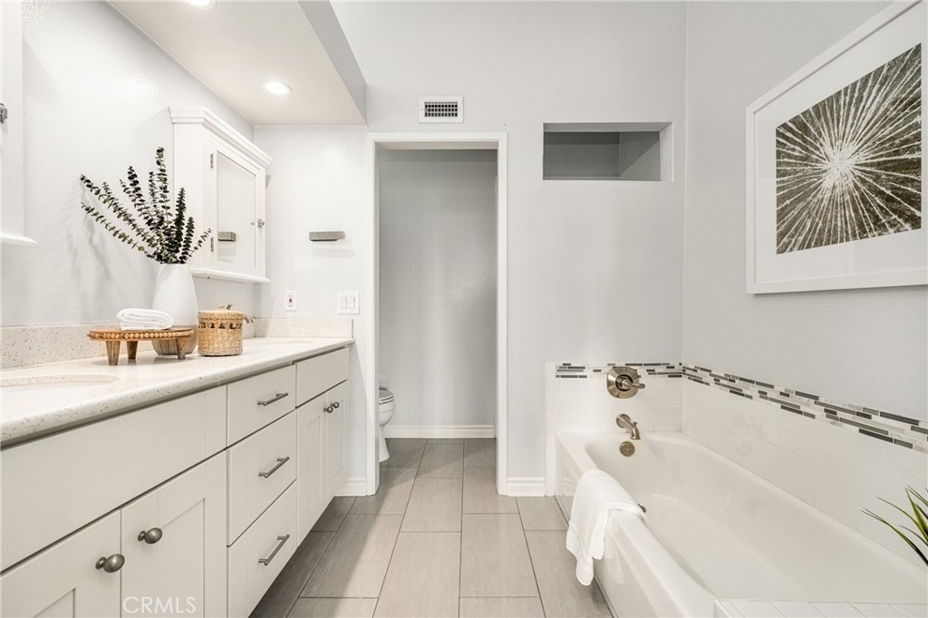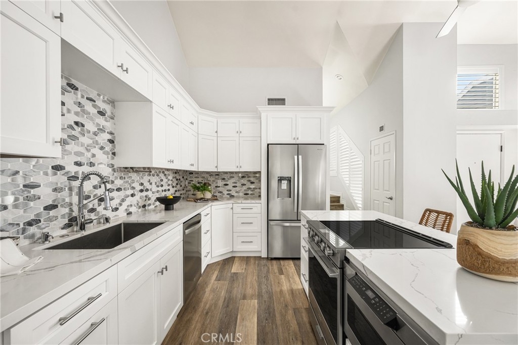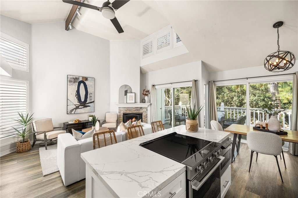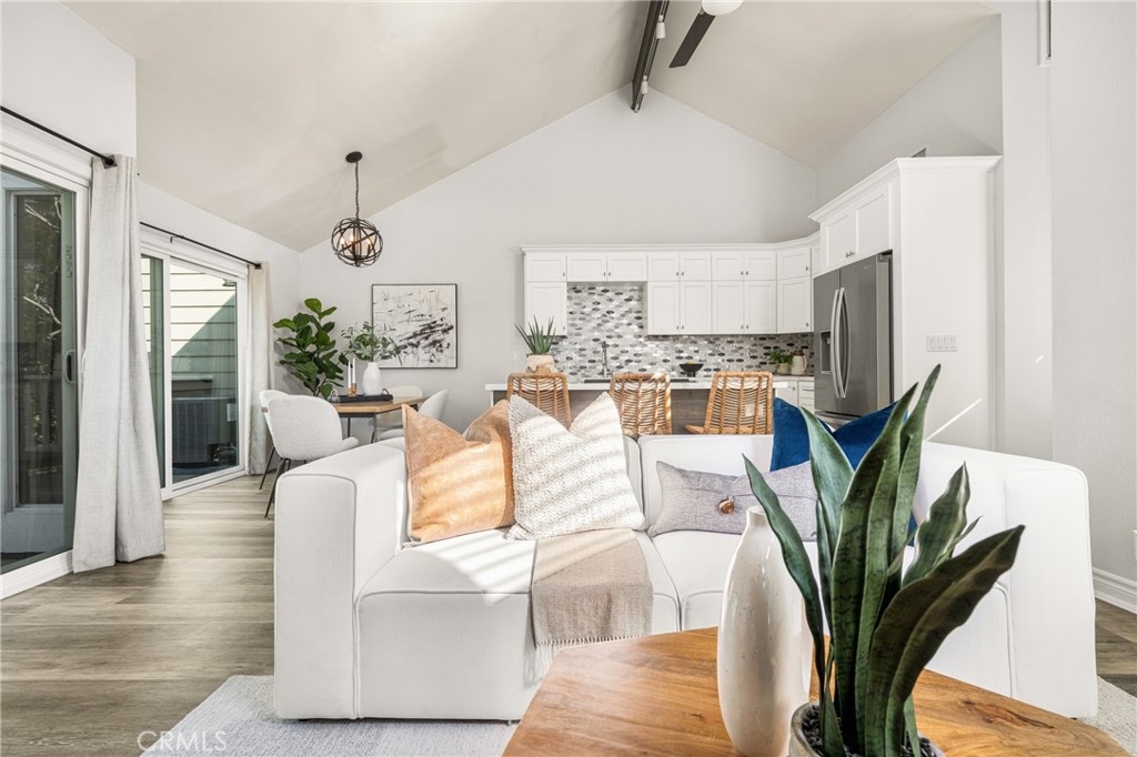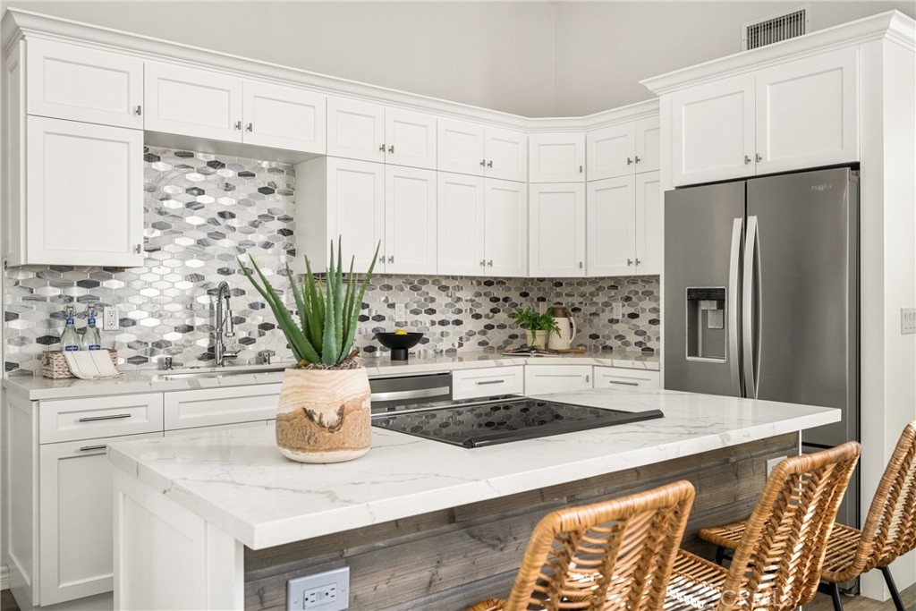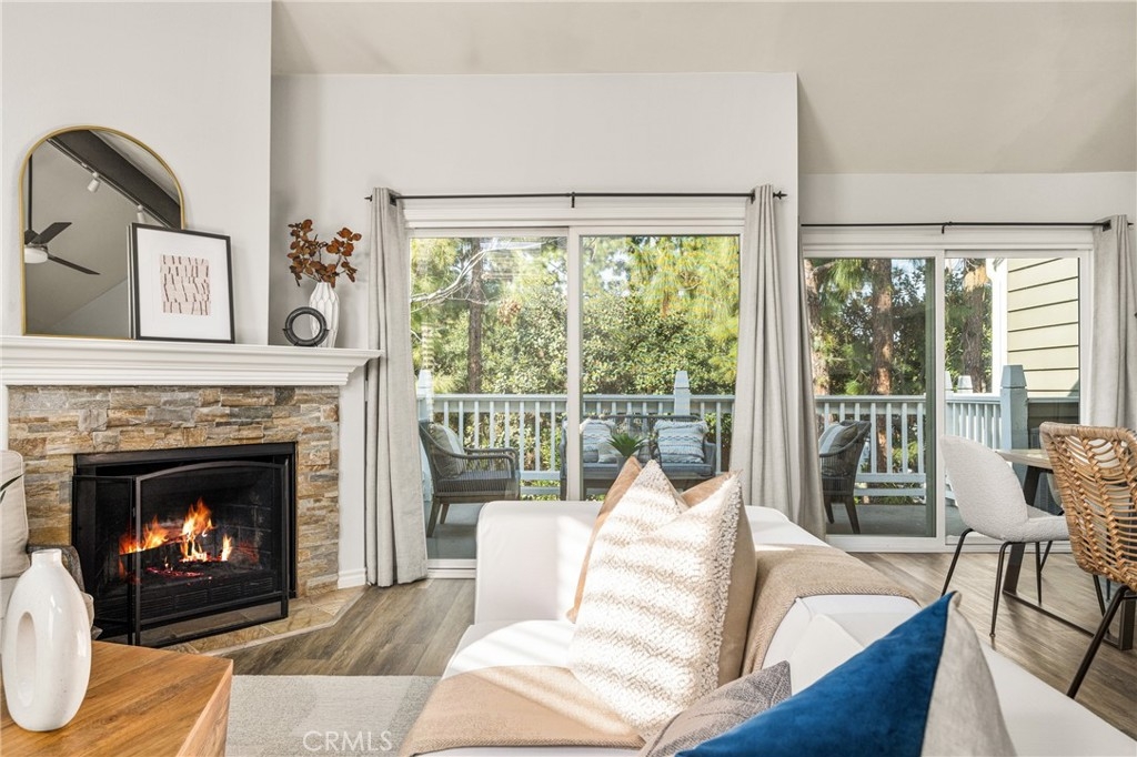 Introducing the most exquisite 2-bedroom, 2-bath remodeled top floor condo nestled in the heart of Costa Mesa. This one truly is stunning! Come home to the community of Pentridge Cove, where this luxurious modern home is interwoven amidst the serene setting of babbling brooks and towering pines, where you'll sit on your private balcony and enjoy your morning coffee or afternoon lunch and feel connected to nature and away from it all, while being steps away from Costa Mesa's finest amenities. This stunning residence has been meticulously upgraded to offer a seamless blend of sophistication and comfort. As you step inside, you're greeted by an open-concept living space adorned with sleek newer luxury vinyl floors, custom finishes, volume ceilings and ample natural light streaming in through large windows and newer sliding doors, creating an inviting ambiance to relax and entertain. The fully remodeled gourmet kitchen is a culinary masterpiece, featuring stainless steel appliances, quartz countertops, stylish cabinetry, and a center island with bar seating. Whether you're whipping up a quick meal or hosting a dinner party, this kitchen is sure to impress even the most discerning chefs. The master suite offers a tranquil retreat with volume ceilings, two mirrored wardrobe closets, and a remodeled en-suite bathroom complete with dual vanities, a soaking tub, and a separate glass-enclosed shower. The second bedroom is generously sized and can serve as a guest room, home office, or whatever suits your needs. An additional full bathroom ensures convenience and privacy for guests. Other fabulous home amenities are the double paned windows, custom refaced wood burning fireplace and mantle in the living room, a brand new stackable washer and dryer, professionally painted interior walls with Dunn Edwards paint, a large two car detached garage with room for storage, Association paid water and trash (you are only responsible for electric and cable/Internet), and a resort like community with a pool and spa. All this within walking distance to some of Costa Mesa's most hip and eco-conscious restaurants and shopping such as The Lab and The Camp, and several artisanal breweries, plus a short drive to OC's famous South Coast Plaza. And if you don't work from home, jumping on a nearby freeway is a breeze to take you anywhere you need to go. This home is one you will be proud of to host your first housewarming party once your boxes are unpacked!