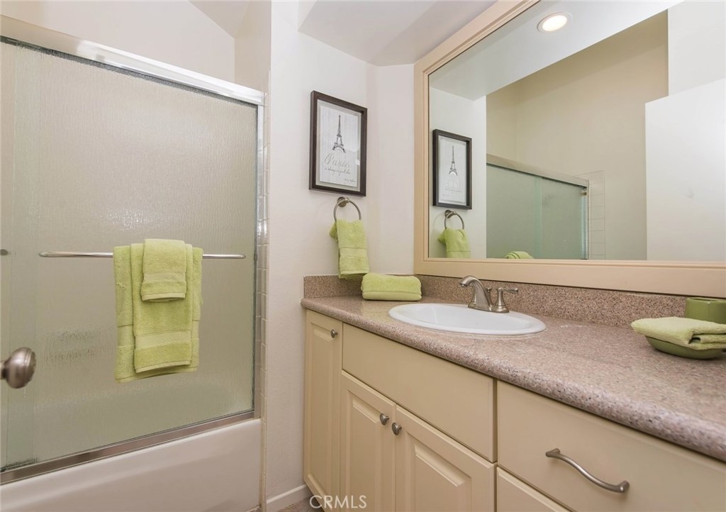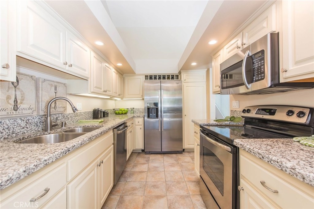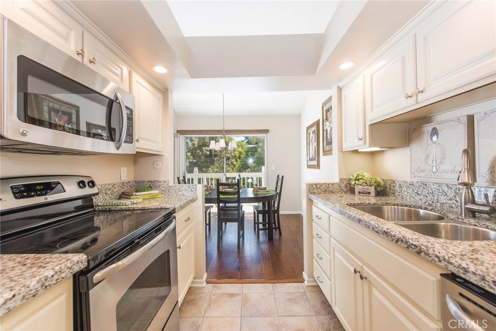 UPPER LEVEL Condominium in Pentridge Cove with a 2 car detached garage! Soaring vaulted ceilings with upper windows flood the home with tons of natural light! This home has been recently updated with engineered flooring in the living and dining areas! Entire home has fresh paint and brand new carpeting in the carpeted areas. Kitchen has also been updated with new cabinets, countertops, and appliances! All kitchen drawers and cabinets are “soft closing”! Guest bath was updated with a new vanity and countertop! Master Bath was renovated and has a new tub, travertine tile shower, new vanity and countertop! Home includes Central A/C and heat, with a NEST thermostat! Other upgrades include plantation shutters in bedrooms, and LED Recessed lighting in the kitchen. Two large sliding doors out to the patio give you views of the trees and a peek-a-boo view of the pool and spa below. Patio is large enough for entertaining or just to relax and hear the meandering streams and small waterfalls that flow throughout the community. Patio also includes a small storage closet. Pentridge Cove is in the heart of everything Costa Mesa has been known for in recent years-The Lab, The Camp, South Coast Plaza, and coming soon across from the community will be “The Plant”-a new project approved by the city which will include more shopping, dining, and living! Additionally, the home is close to several major freeways! This home is in an excellent location to be, right now!