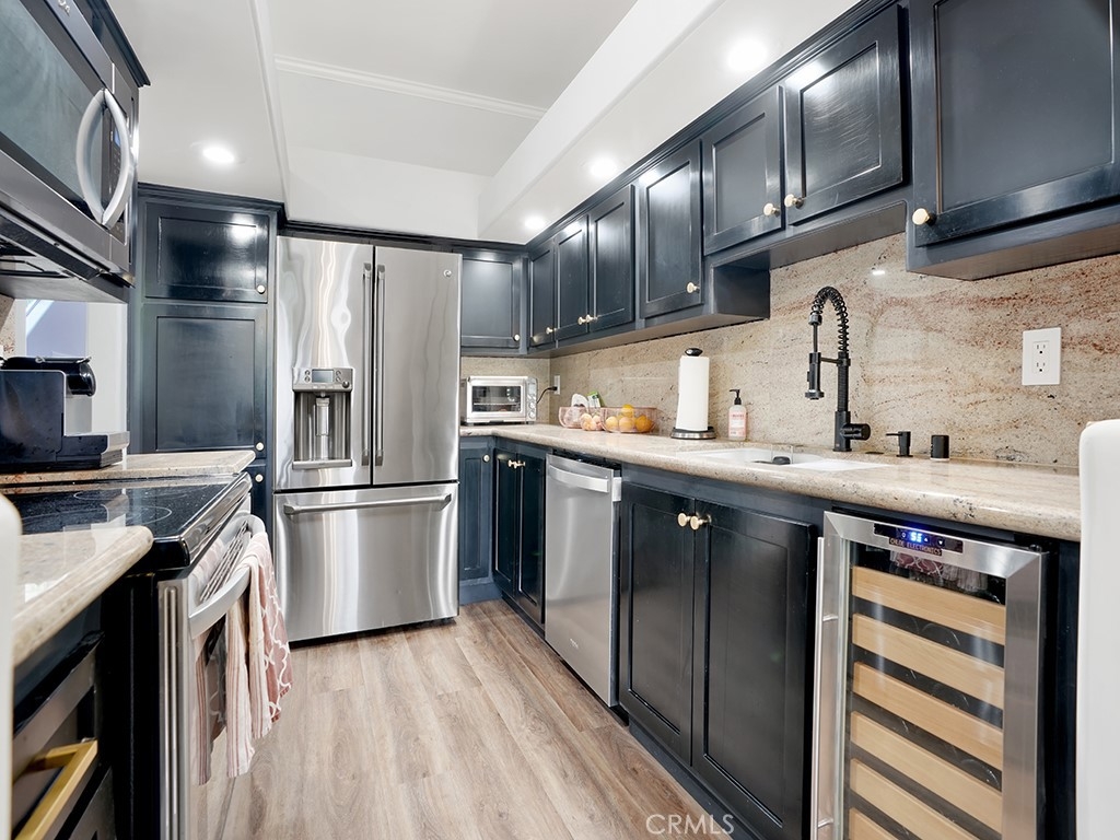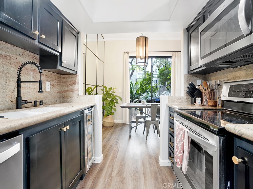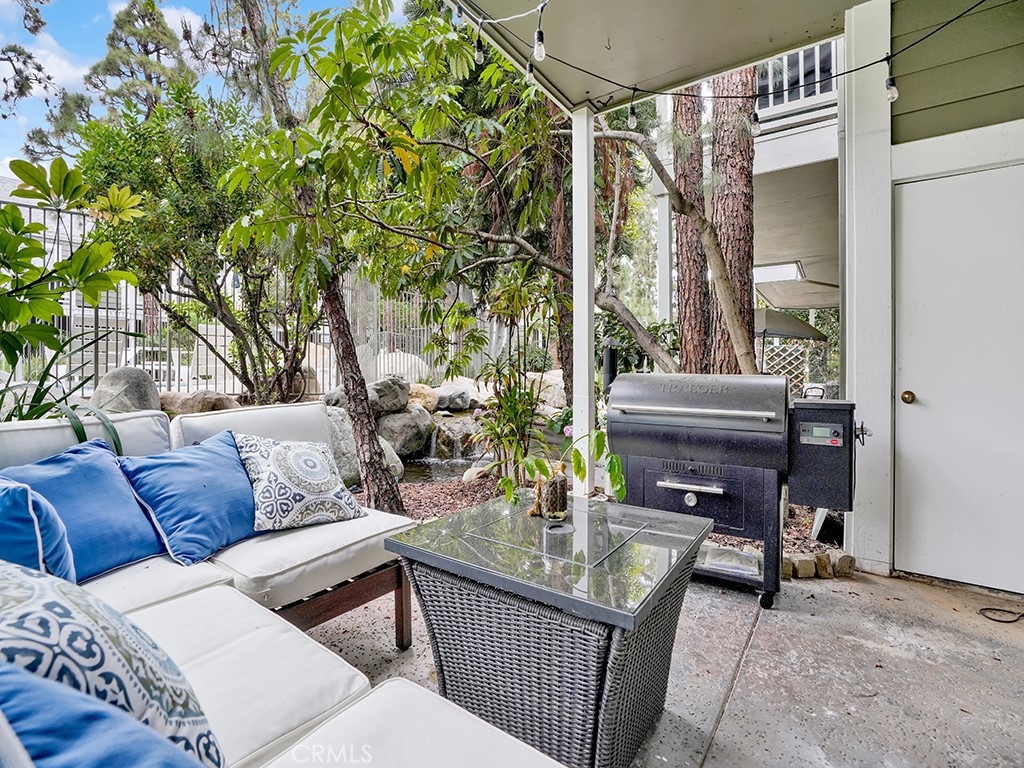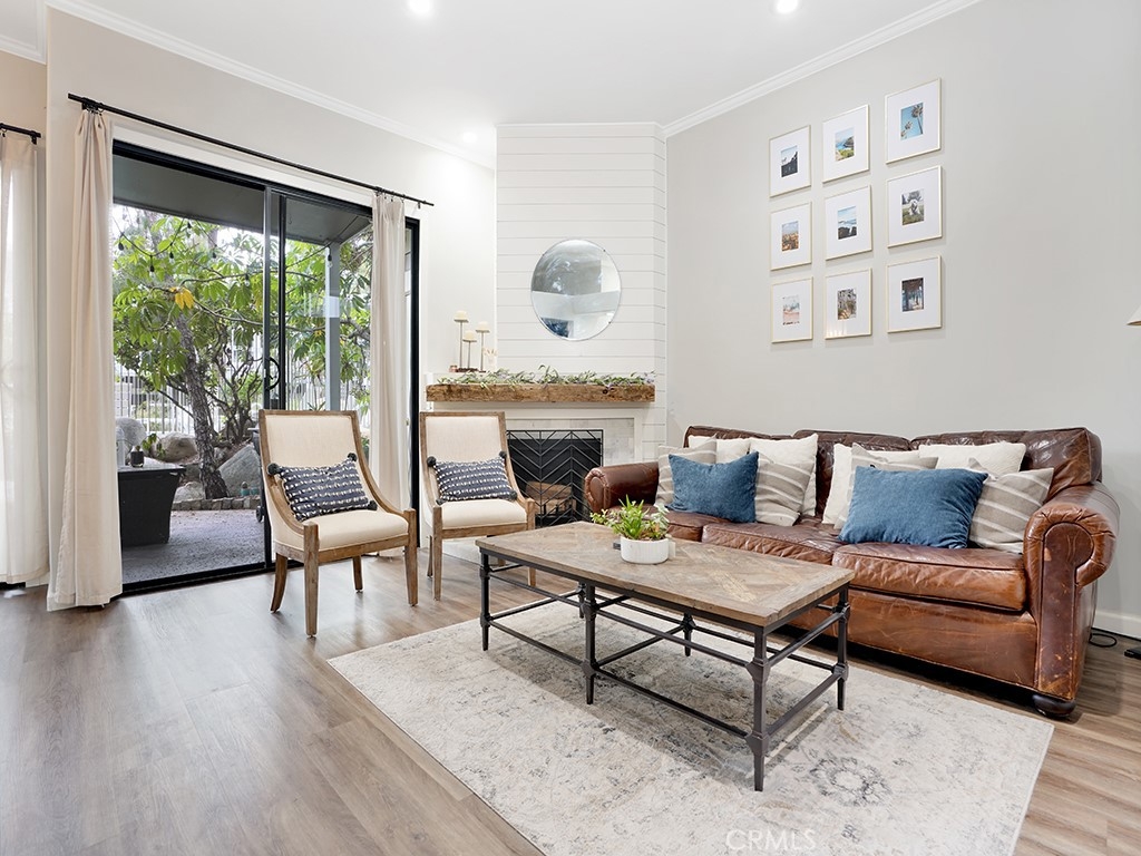 A fantastic opportunity in Pentridge Cove, this home features a functional interior and contains a spacious open living and dining area that leads directly out to the private patio. Enjoy the impressive kitchen that has been beautifully updated and is outfitted with granite countertops, custom cabinets and a wine fridge. Both bathrooms have been impressively remodeled and feature designer tile. The main bathroom features a soaking tub, walk-in shower and dual sink vanity. New luxury vinyl floors throughout, a cozy wood burning fireplace, stunning reclaimed wood mantle, high ceilings and an oversized two-car garage. Other highlights include in-unit washer and dryer, new AC unit and a Nest. HOA includes water, trash and landscaping. Discover all the perks of this community, close proximity to freeways, parks, and some of the best shopping and dining Costa Mesa has to offer.