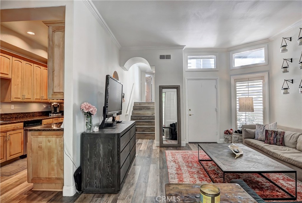Gorgeously remodeled home in the high demand Pentridge Cove community! It features 2 spacious bedrooms, 2 bathrooms, and 985 sq ft of open and bright living space. Located on the lower level, you have easy access to both the front door as well as the 2 car garage and it is also positioned near the back of the complex providing an extra level of privacy and quiet. The interior amenities include: beautifully toned laminate flooring, granite counter tops in both kitchen and bathrooms, inside laundry, crown moldings, high quality cabinetry, plantation shutters throughout, recessed lighting, stainless steel appliances, ample storage space, dual sinks in master baths, upgraded master shower, air conditioning and more! The back patio is perfect for relaxing as it is the last patio in the row and is located alongside a serene brook. The 2 car garage is large and has room for plenty of other storage. Pentridge Cove is across the street from popular spots like The Camp and is near The Lab, South Coast Plaza, Segerstrom Center for the Arts, and other phenomenal shopping and dining. Do not miss this opportunity to own a fabulous condo in an amazing community and destination area!
