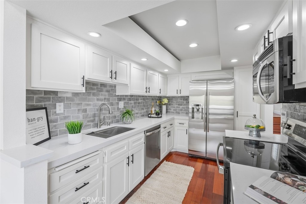 Live in the HEART of Costa Mesa!!! This beautifully upgraded, freshly interior painted 2 bedroom, 2 bathroom condo and loft has everything a homeowner could dream of and more! High Vaulted Ceilings and a great amount of windows bring in a multitude of natural light, emphasizing every single UPGRADE. The stunning Hardwood floor in the cozy living room highlight the fireplace and formal dining room with slider to private balcony. Balcony provides beautiful green View, View of the pool in a short distance and the peaceful sounds of the running streams below. From the Quartz Countertops, to Stainless Steel Appliances, the fully REMODELED Kitchen space give you the feel of Modern Comfort. The home has plenty of charm with UPGRADED Bathrooms, Vaulted Ceilings & recently installed carpet in both bedrooms, a Spacious Loft, 2 Car Garage and not only one of the BEST locations in the entire complex, it has one of the BEST locations in the HEART of Costa Mesa! The home is just walking distance from the CAMP & numerous selection of Restaurants, Shopping and Entertainment galore! Come fill this home with LOVE!!!