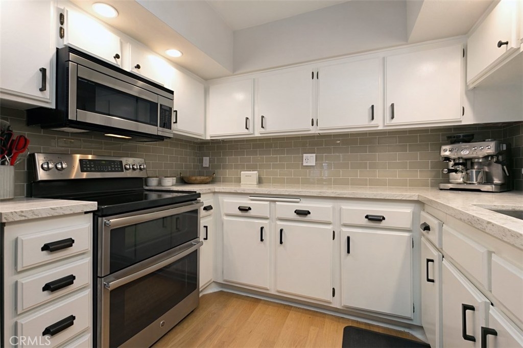 Welcome home to your peaceful and serene living environment. This highly upgraded "smart" home has newer windows, plantation shutters, solid natural wood floors and a recently remodeled kitchen. The tasteful open kitchen has marble countertops, custom tile backsplash, under cabinet lighting and stainless steel appliances. It's the perfect place to refresh, share and entertain with loved ones and friends. Unwind in the living room around the fireplace while overlooking your private patio with a tranquil creek view. The master bedroom is a true retreat boasting a recently remodeled tub/shower, spacious closets with built-ins, extra storage in the cozy window seat bench with custom pillow. The perfect place to sit in natural sunlight and read a book. With todays living you will be delighted with the oversized 2-car garage with an abundance of storage! In addition, further amenities include, indoor laundry with included washer and dryer, central A/C, fresh paint and many "smart" features, Yale lock, Nest thermostat, WiFi garage door, Nest doorbell and google home. HOA fees covers all utilities except electricity. A friendly well maintained community with-in walking distance of The Lab and The Camp, and world class shopping at South Coast Plaza, makes this home truly special and the perfect place to call home!