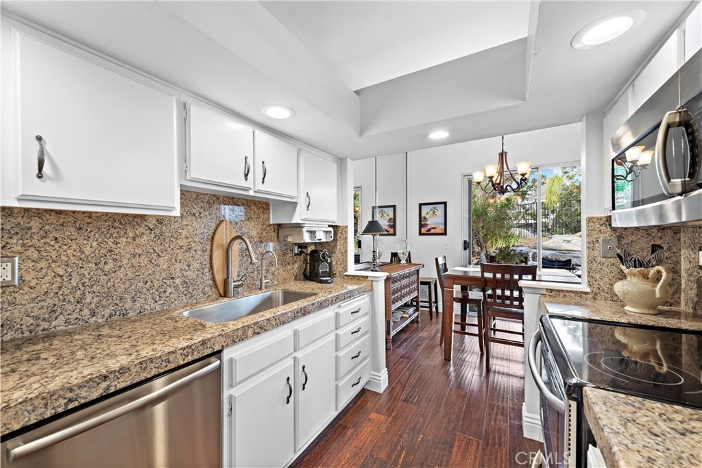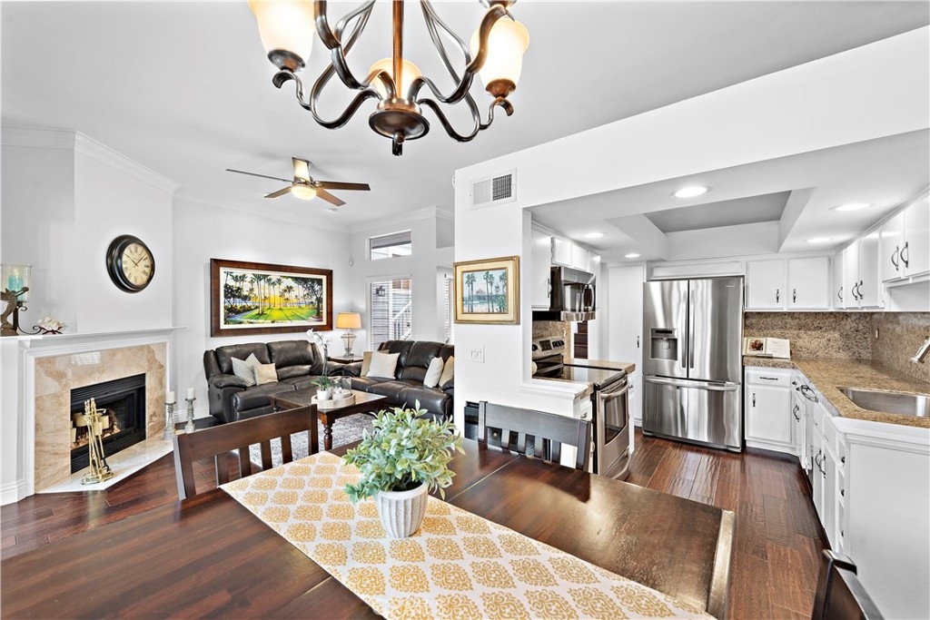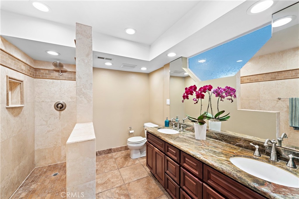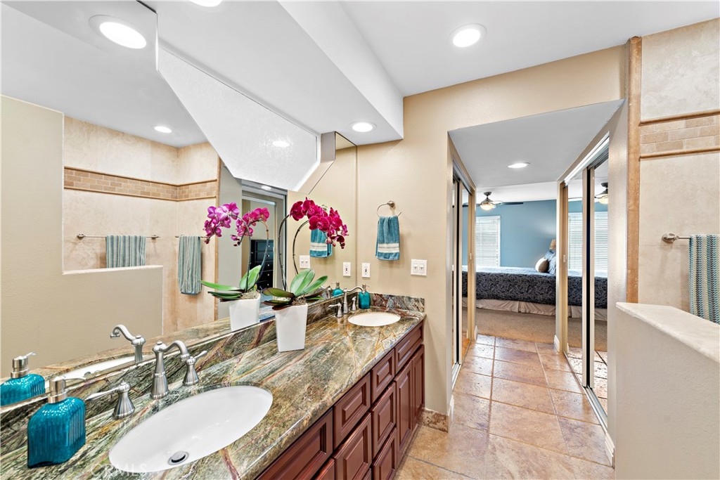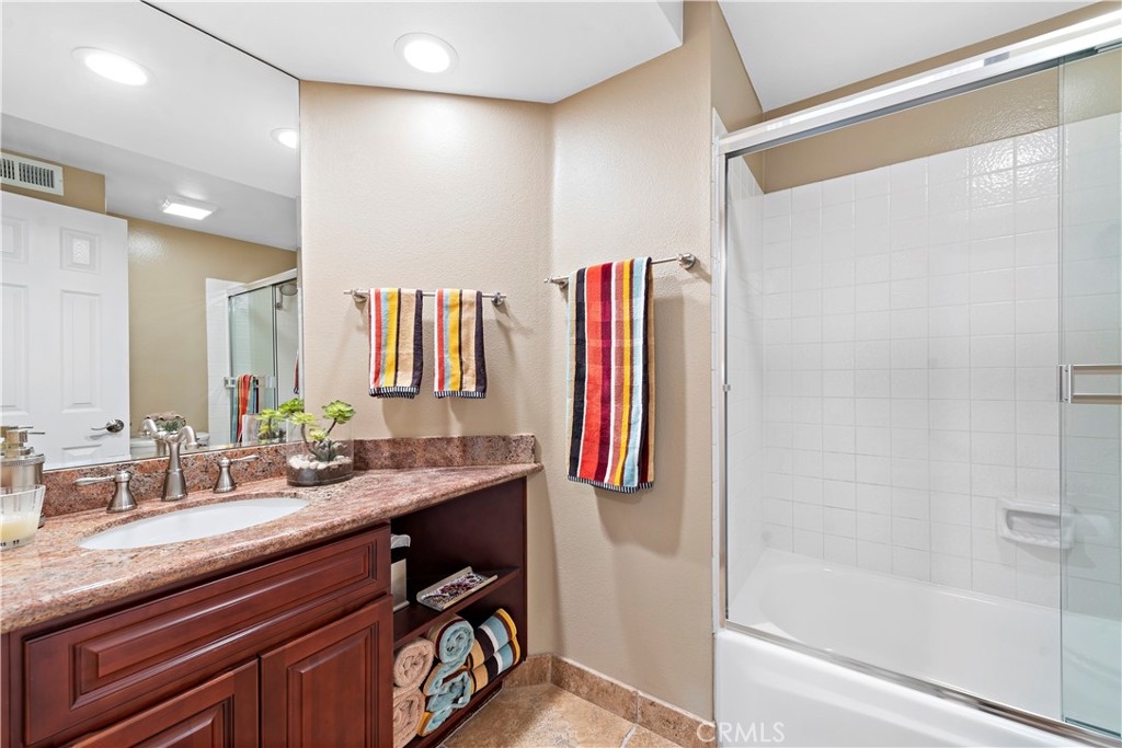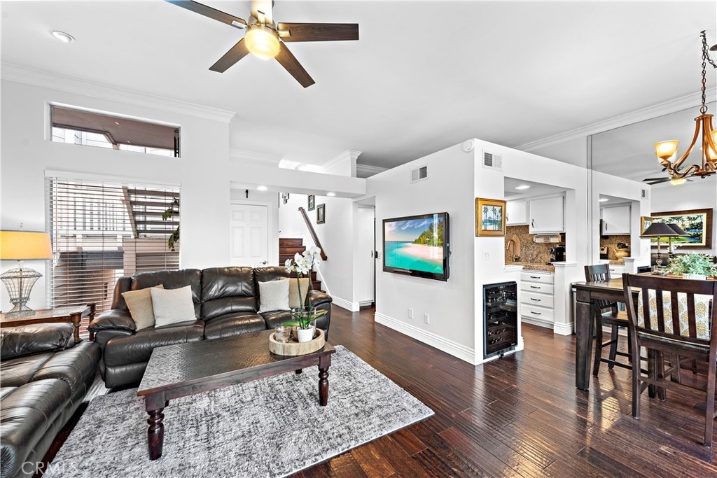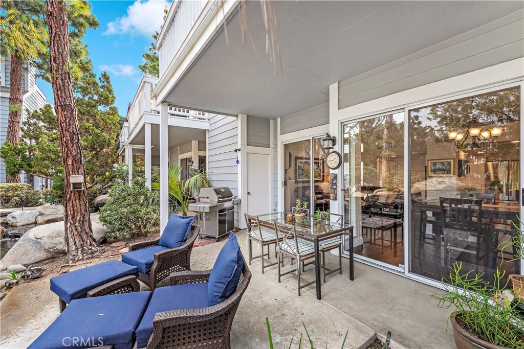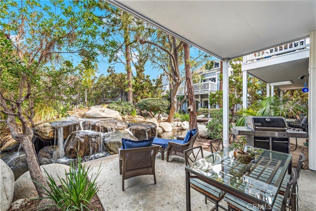 Beautiful two-bedroom, two-bathroom residence located in the heart of Costa Mesa. Stylishly remodeled with custom wide-plank hardwood floors, large tiles in the bath suite includes double closets, and spacious walk-in Roman shower, dual sinks and plenty of counter space. The kitchen includes custom stone counters, an oversized deep sink, and stainless-steel appliances - including a 48-bottle bottle dual zone wine fridge. The unit, a former model, has the best interior location with a spectacular view of the waterfalls and streams from the large patio - particular at night with custom landscape lights. Oversized two-car garage and laundry center inside unit. The home is llocated near South Coast Plaza, The Lab, The Camp and major freeways. Association Pool and Spa.