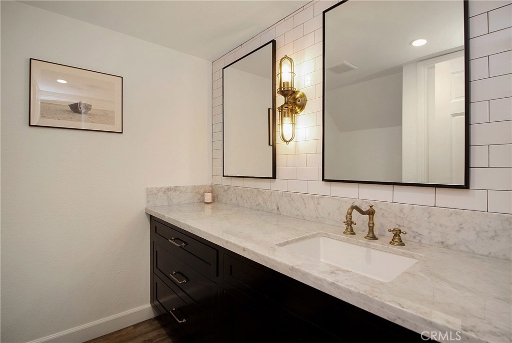 Welcome to your new home in the highly desirable Peppertree Community of East Costa Mesa adjacent to the Upper Backbay area of Newport Beach. Your interior living spaces are sophisticated & modern - tastefully accentuated by vintage design elements. The interior location & orientation of your new home allows for both a maximization of natural lighting & privacy. Recent updates to your new home's kitchen include: luxury vinyl tile flooring, a subway tile backsplash, white quartz countertops, floating Alderwood shelves, custom hand-crafted cabinetry with Birch interior finish & soft-close drawers, Schoolhouse Electric natural brass hardware, a cast-iron undermount farmhouse sink, & LED lighting. All of your bathrooms have been updated. Updates to the master bathroom include: black limestone flooring, marble shower tile, a custom glass enclosure, a Restoration Hardware marble top vanity , mirror, sconces, towel bar, etc. Your mainfloor powder updates include: luxury vinyl tile, subway tile backspash, marble countertops, designer mirrors & antique faucet/hardware, & custom handcrafted cabinetry with birch interior & soft-close drawers. Additionally, your new home also has fresh paint inside & out, a water heater less than 2 years old, solid wood doors in both bedrooms, the powder & the master bath. The patio/yard area has also been redone to include both natural stone & high-end synthetic turf.