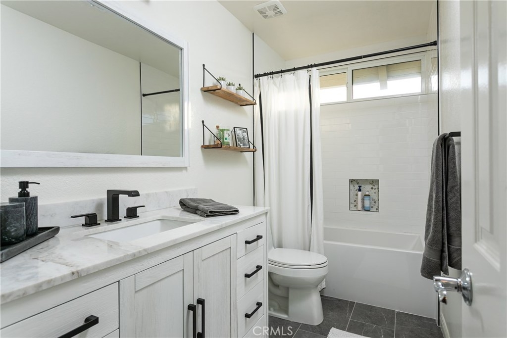 An incredible private setting in prime Eastside Costa Mesa. A secluded quiet end-unit location surrounded by lush greenery, mature trees and a rare oversized private backyard with newly installed grass turf, pavers, and jacuzzi. This stylish designed boho-chic home is newly renovated and highly upgraded with tongue and groove vaulted ceilings, 3 new skylights, stunning bathrooms, highly upgraded kitchen and all new window treatments. This timeless property has an intimate open layout with two bedrooms, two bathrooms and spacious living area with a white brick wood burning fireplace. All rooms have high ceilings, ceiling fans, new skylights, dimmable lightning systems and new carpet. Bathrooms with stone floors, new vanities, custom built tiled shower plus new oversized tub in guest bath. Each equipped with Fergueson matte black Delta fixtures. The kitchen offers stone countertops and backsplash, raised breakfast bar, all new stainless steel Fridgedaire appliance ensemble; including gas range, z-line range hood, refrigerator, and dishwasher. New Blanco sink, matte black Pfister faucet, soft close drawers, ample cabinetry, pantry, and additional laundry hook-ups. Sliding glass doors in master and dining, vinyl windows, and A/C. Access to both decks from living, kitchen, dining, and master. A two-car garage with new Epoxy flooring. Community pool/spa. A stones throw to Back Bay, parks, two golf courses, and close to beach and dining. By appointment.