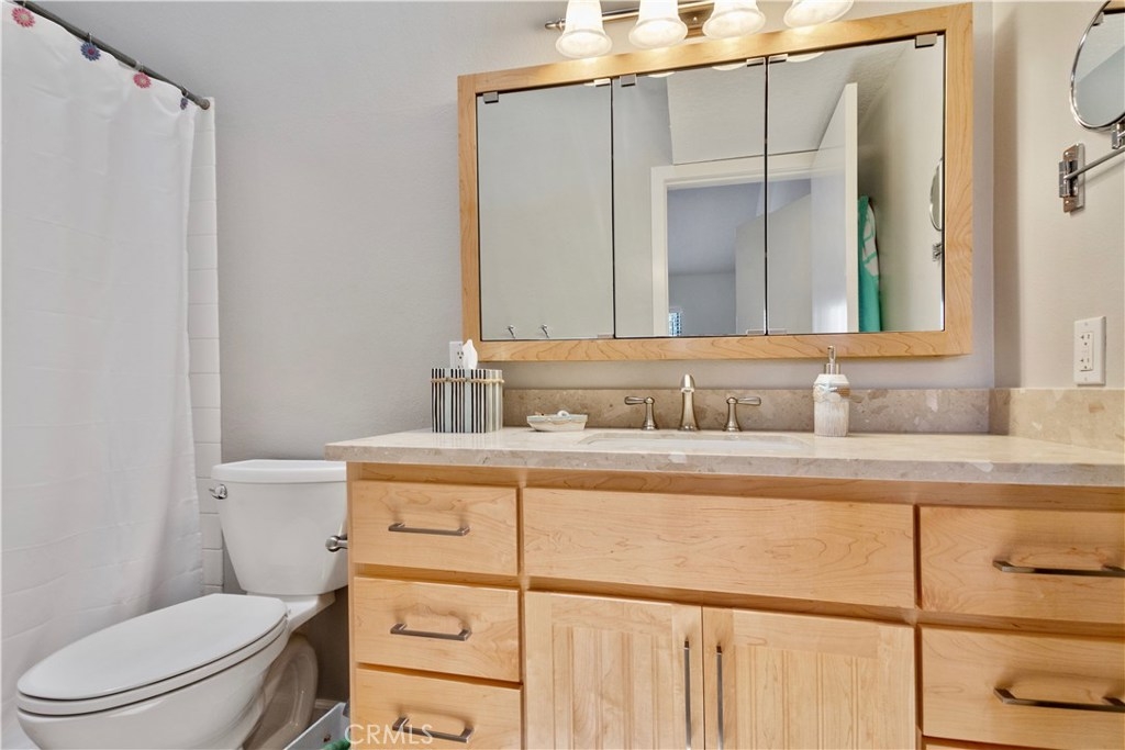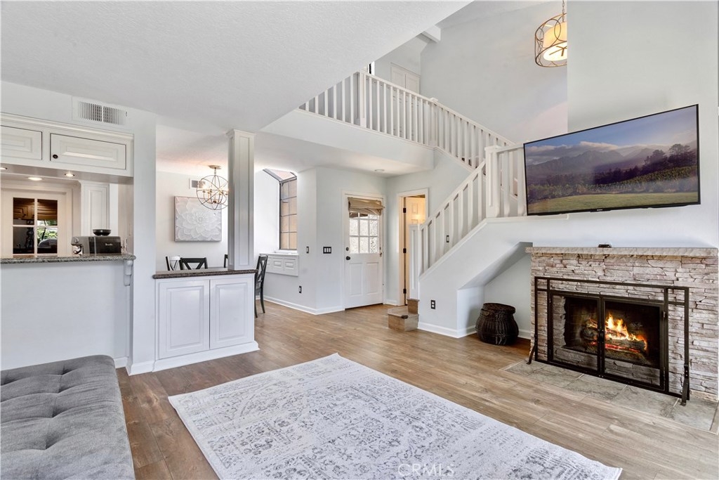 Immaculate San Michel dual master bedroom townhome located less than 3 miles from the beach! Updated kitchen complete with custom white cabinetry, stainless steel appliances, and granite counter tops. Beautiful wood laminate flooring throughout living areas, along with vaulted ceilings and plenty of natural light. Upstairs find 2 master bedrooms, each with their own full remodeled bathrooms. Outside you will find one of the communities largest private patio areas, with newer paver stones. Other amenities include a stacked stone gas fireplace, central A/C, oversized 2 car garage with direct access into kitchen. Community of San Michel offers gated access, pool, spa and BBQ area.