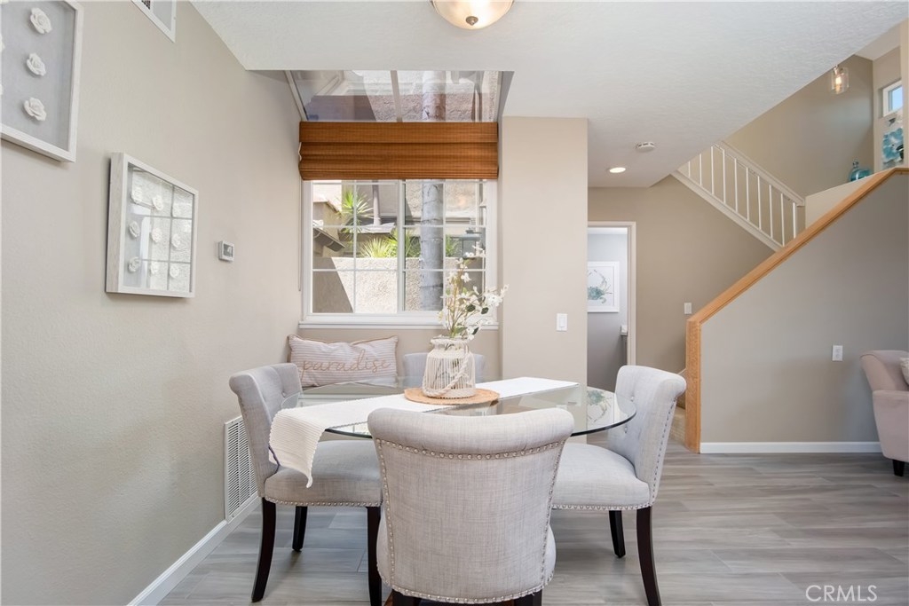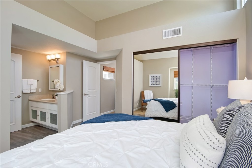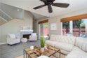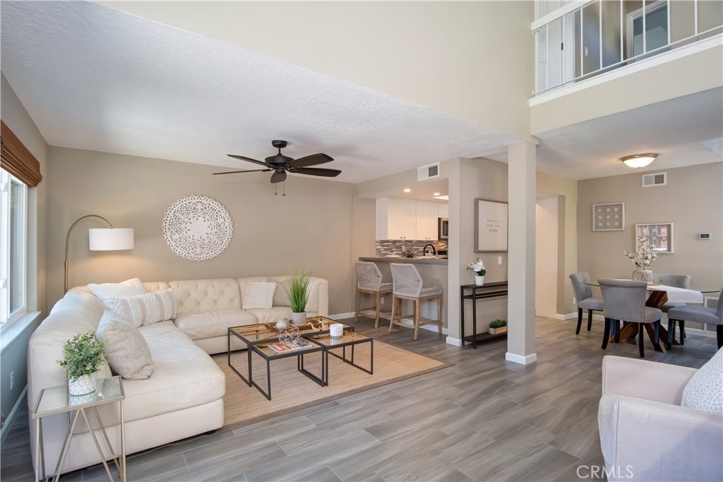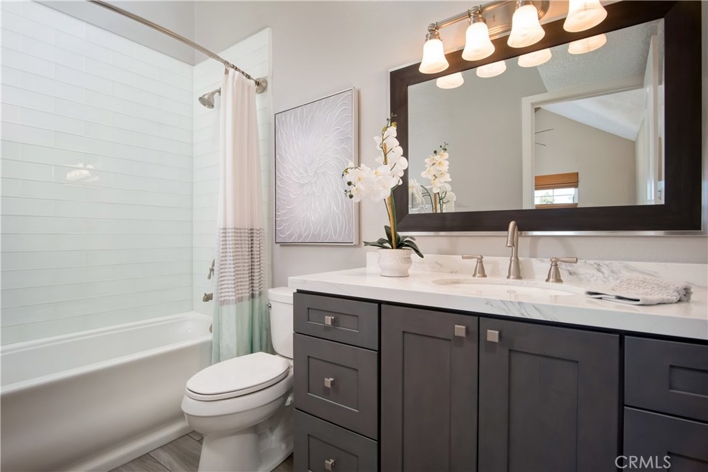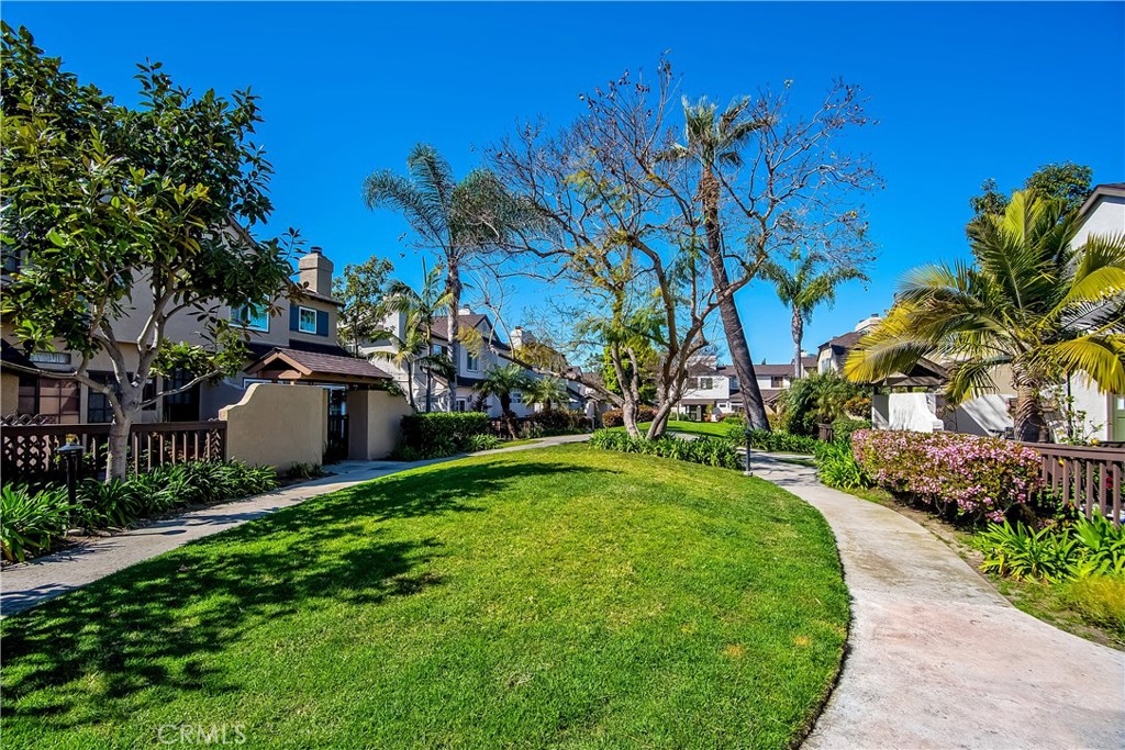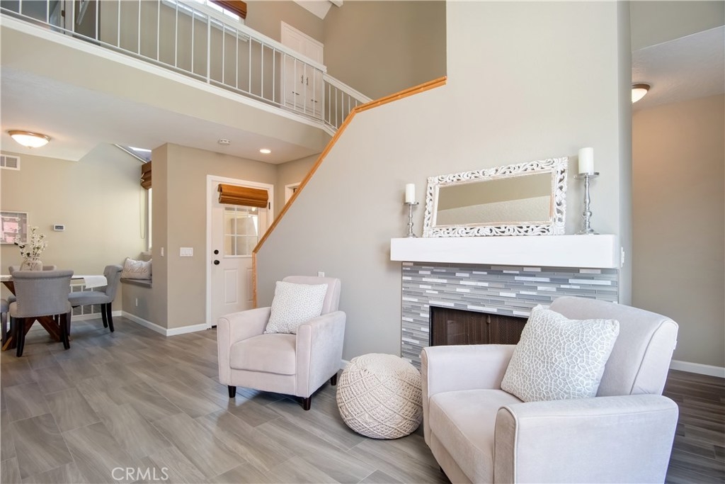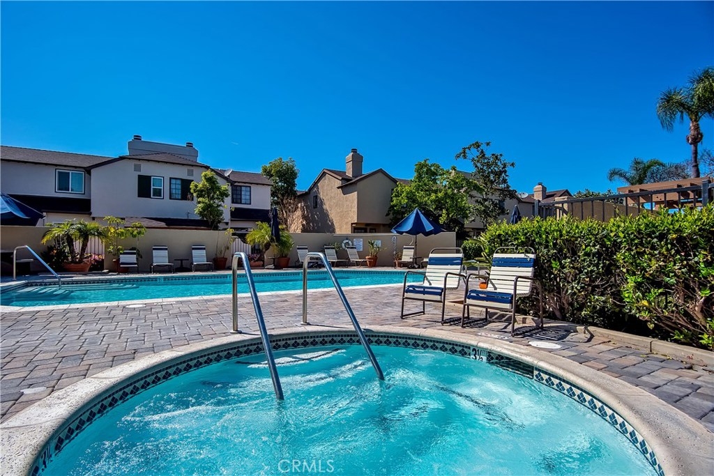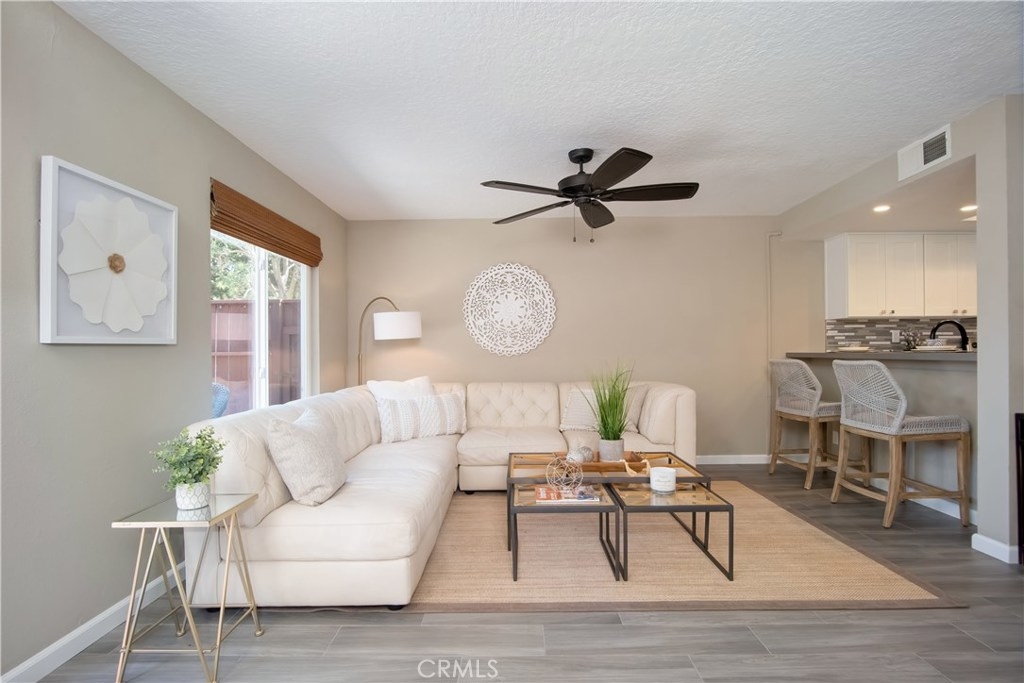 Just under three miles to the beach, this fully renovated end unit townhome boasts smart design, a clean color palette, and a spacious floor plan with vaulted ceilings. The downstairs statement window welcomes heaps of natural light creating an airy open space. The remodeled kitchen features white shaker style cabinets, quartz countertops, farmhouse sink, full tile backsplash, and stainless steel appliances. Beautiful tile wood floors stretch throughout the first floor and hall upstairs. There is an updated mosaic tile fireplace and peak around the fireplace to find a large storage area. Walking through the sliding glass doors, you will find a large private patio and yard that has been upgraded with paver stones and artificial grass. Upstairs you will find two master bedrooms each with their own remodeled full bathrooms. The spacious rooms have vaulted ceilings and ceiling fans. The home also has an oversized two car garage with direct access to the kitchen, dual pane windows throughout, recently painted interior, newer interior doors, newer furnace and hot water heater. Great location within the community. San Michel is a quiet gated community offering a pool, spa and BBQ area with a low $239/month HOA. This is a must see.